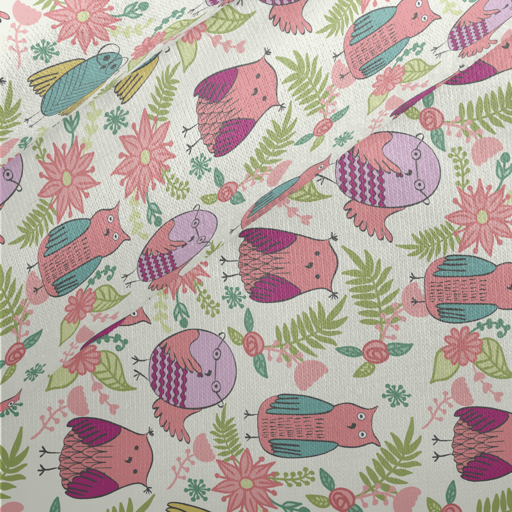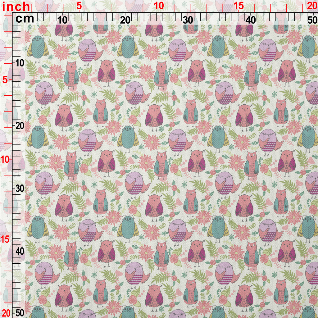 兒童可愛貓頭鷹和花朵刷毛布(幅寬150公分)