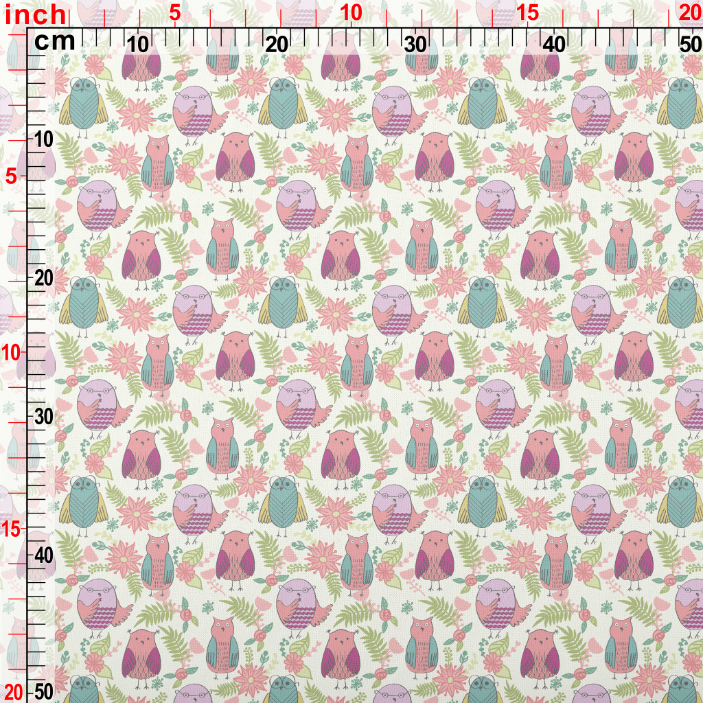 兒童可愛貓頭鷹和花朵薄棉布(幅寬150公分)