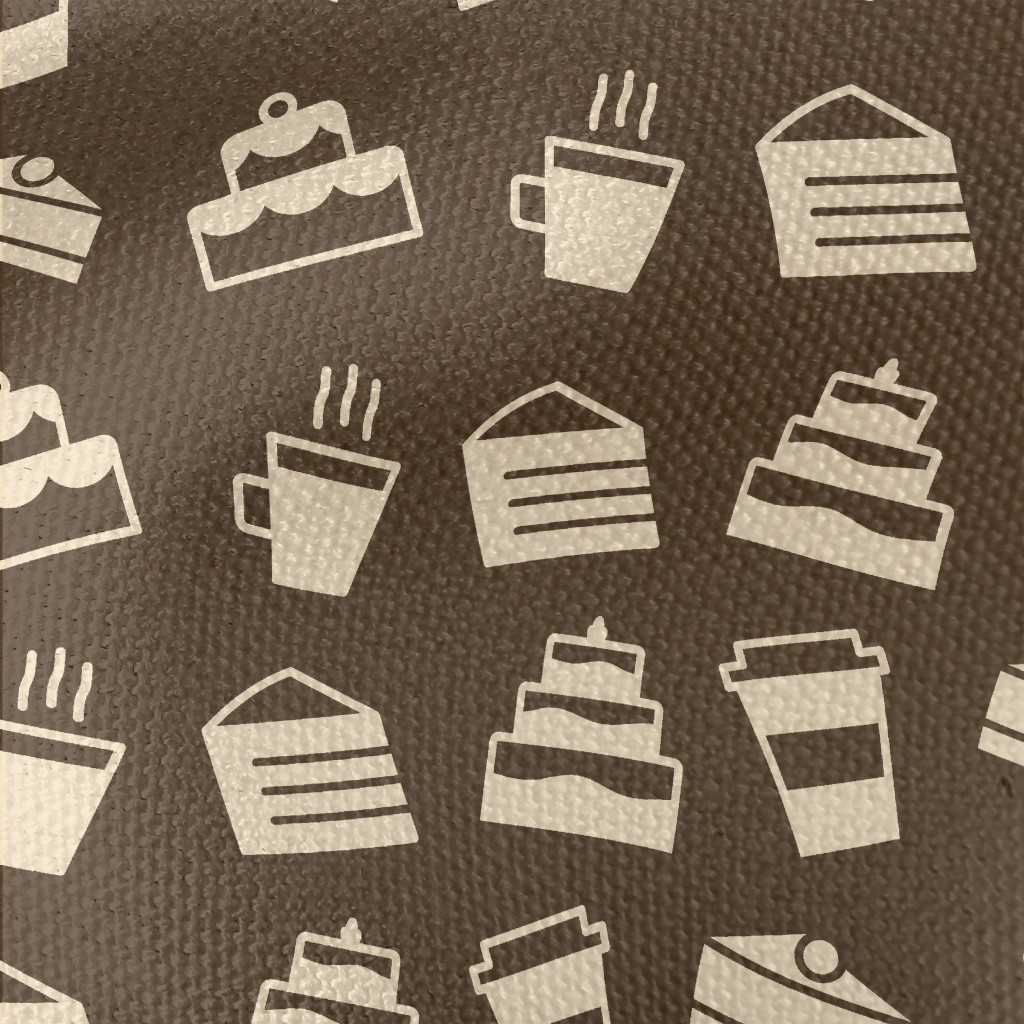 色塊蛋糕與咖啡圖案帆布(幅寬150公分)
