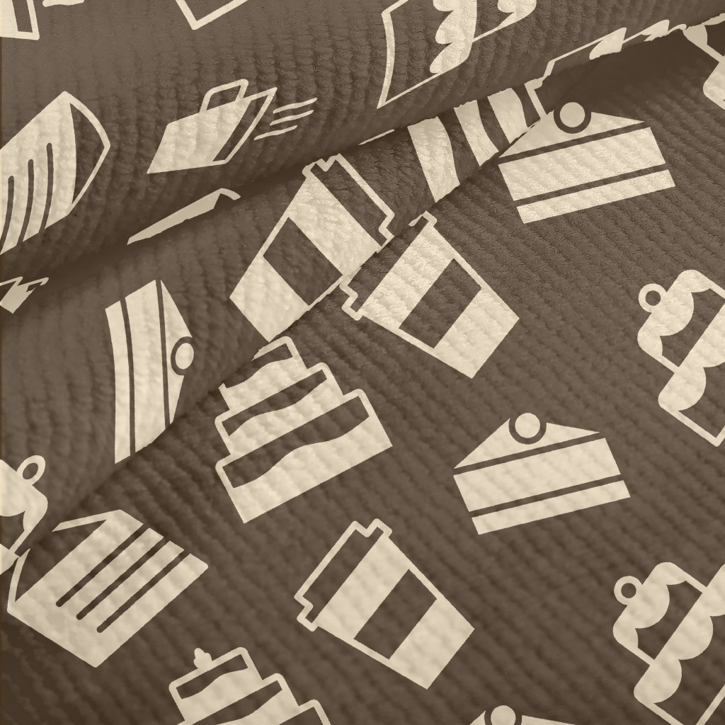 色塊蛋糕與咖啡圖案毛巾布(幅寬160公分)