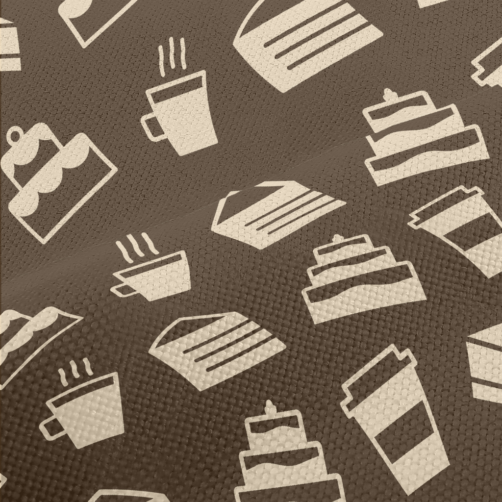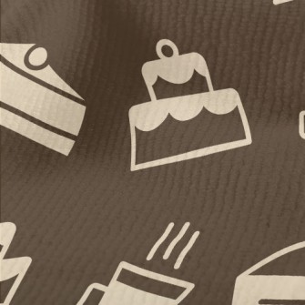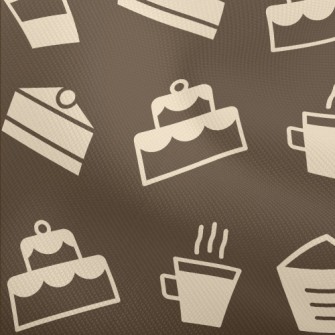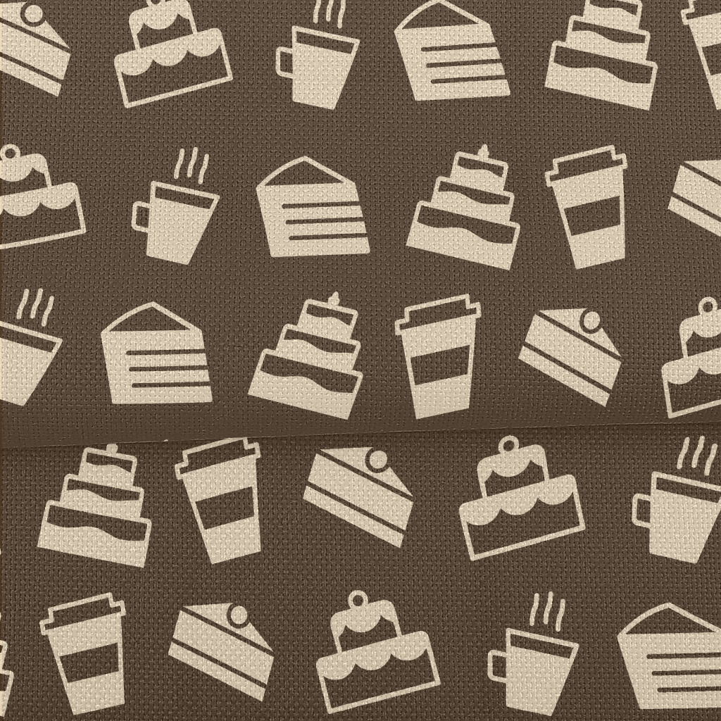 色塊蛋糕與咖啡圖案麻布(幅寬150公分)