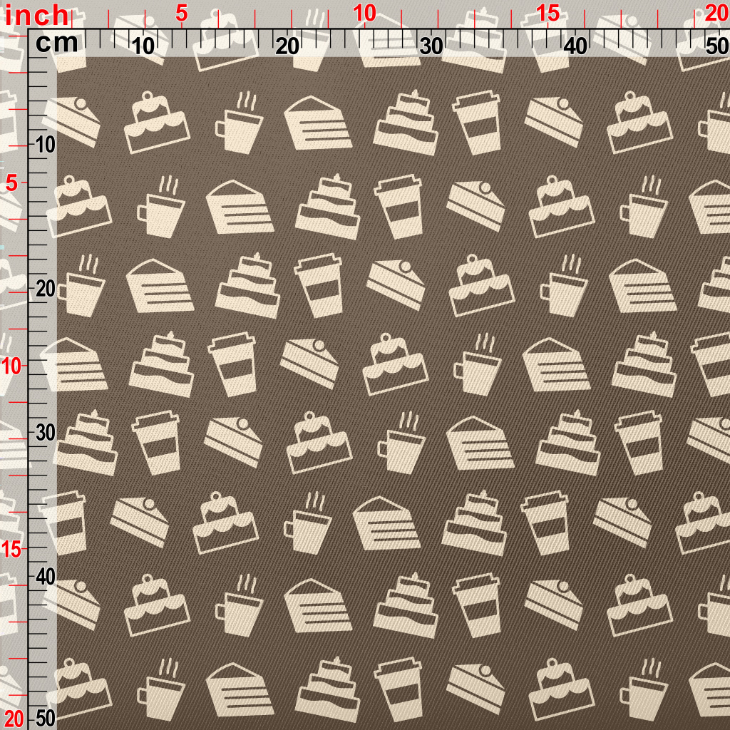 色塊蛋糕與咖啡圖案斜紋布(幅寬150公分)