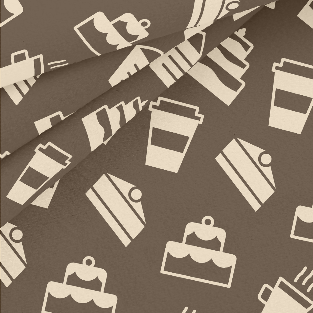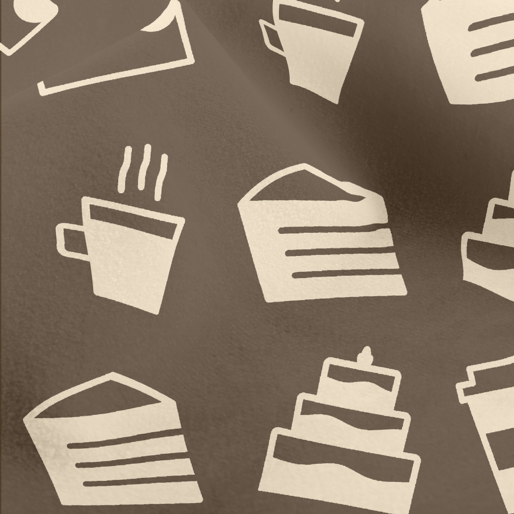 色塊蛋糕與咖啡圖案水晶絨(幅寬160公分)