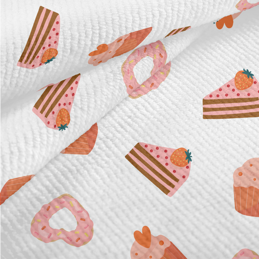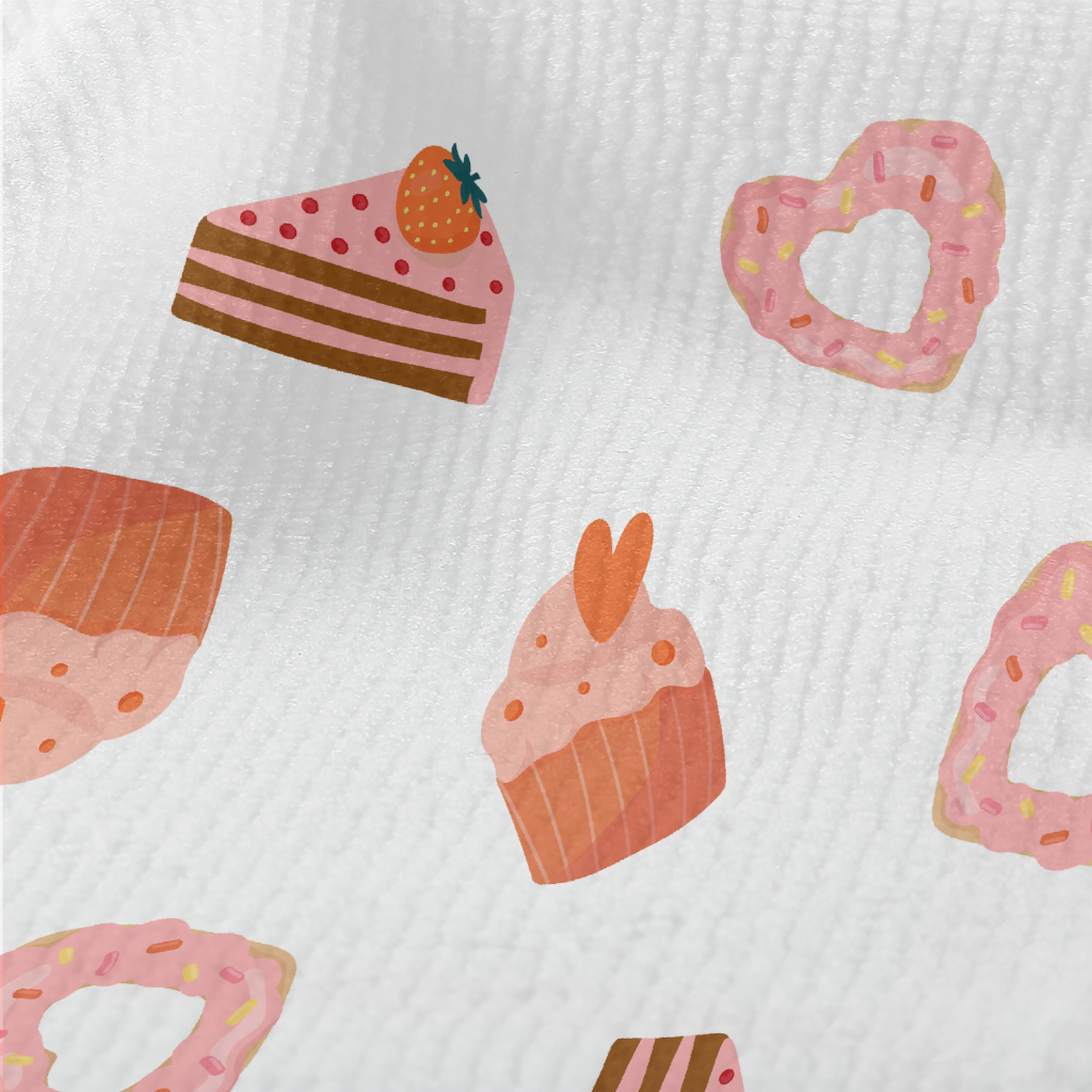 粉色草莓蛋糕與甜點毛巾布(幅寬160公分)