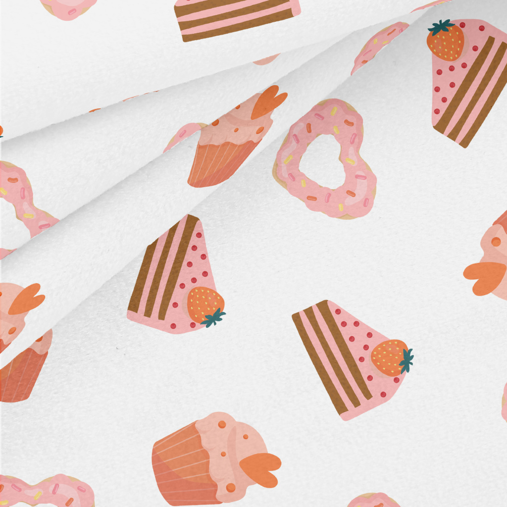 粉色草莓蛋糕與甜點水晶絨(幅寬160公分)