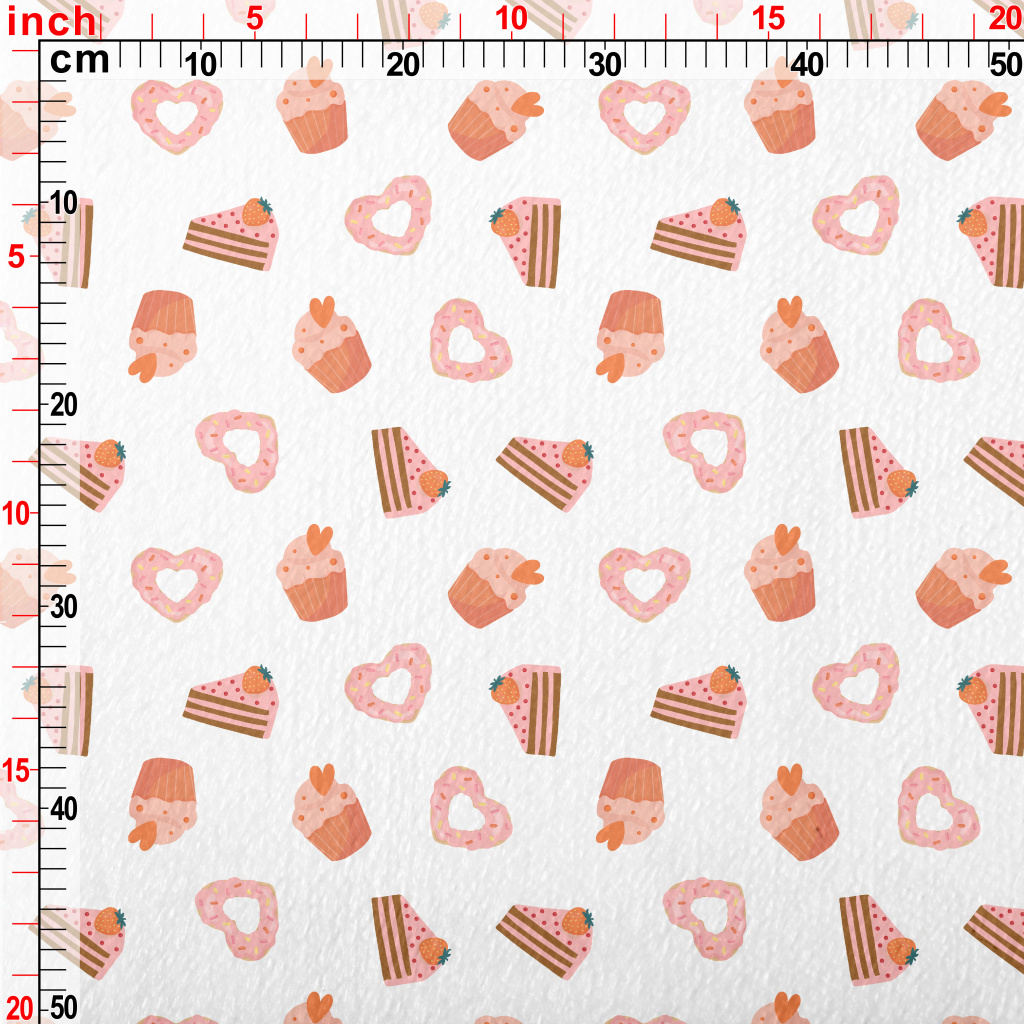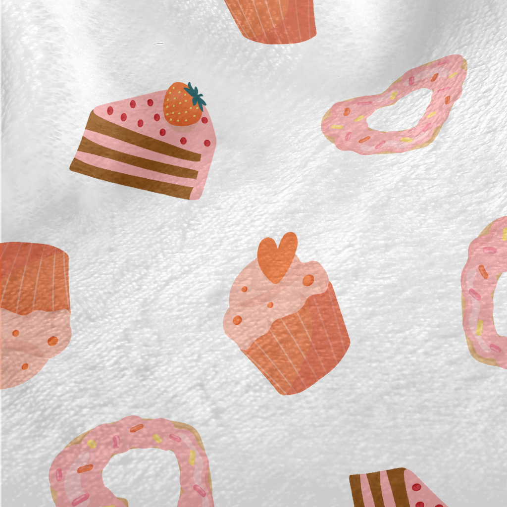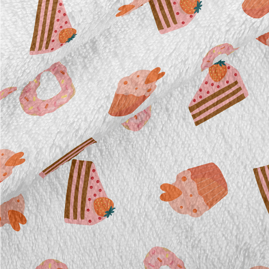 粉色草莓蛋糕與甜點法蘭絨(幅寬150公分)