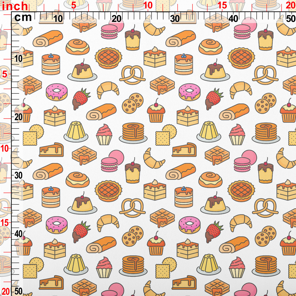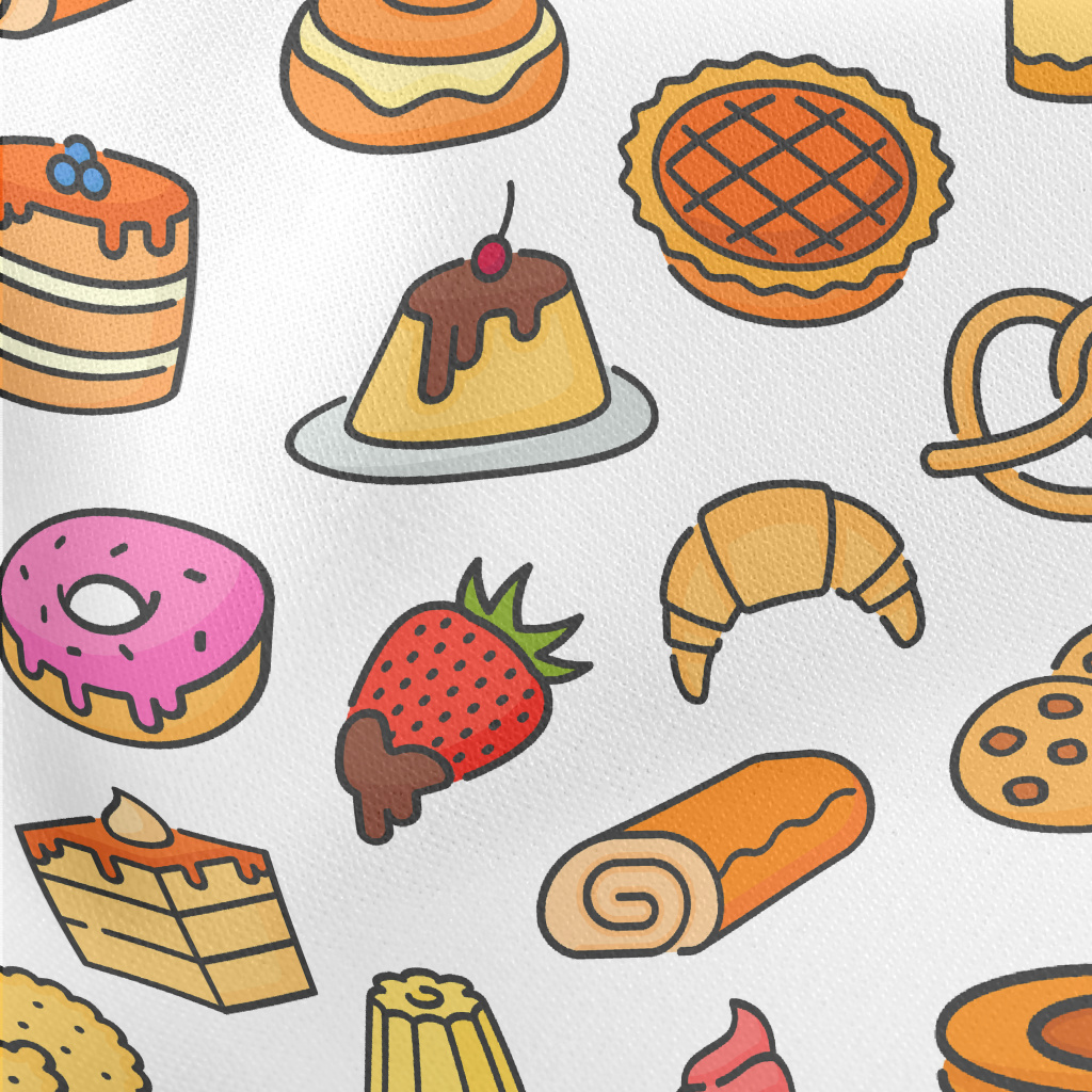卡通彩色好吃甜點薄棉布(幅寬150公分)