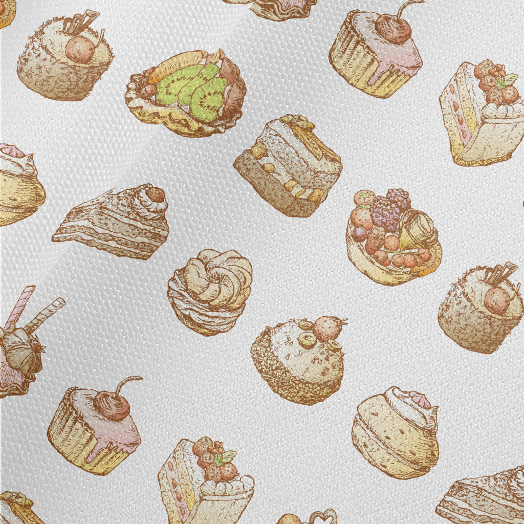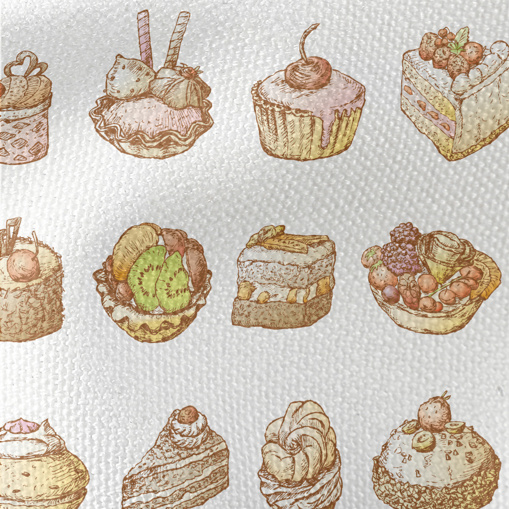 手繪復古風蛋糕甜點帆布(幅寬150公分)