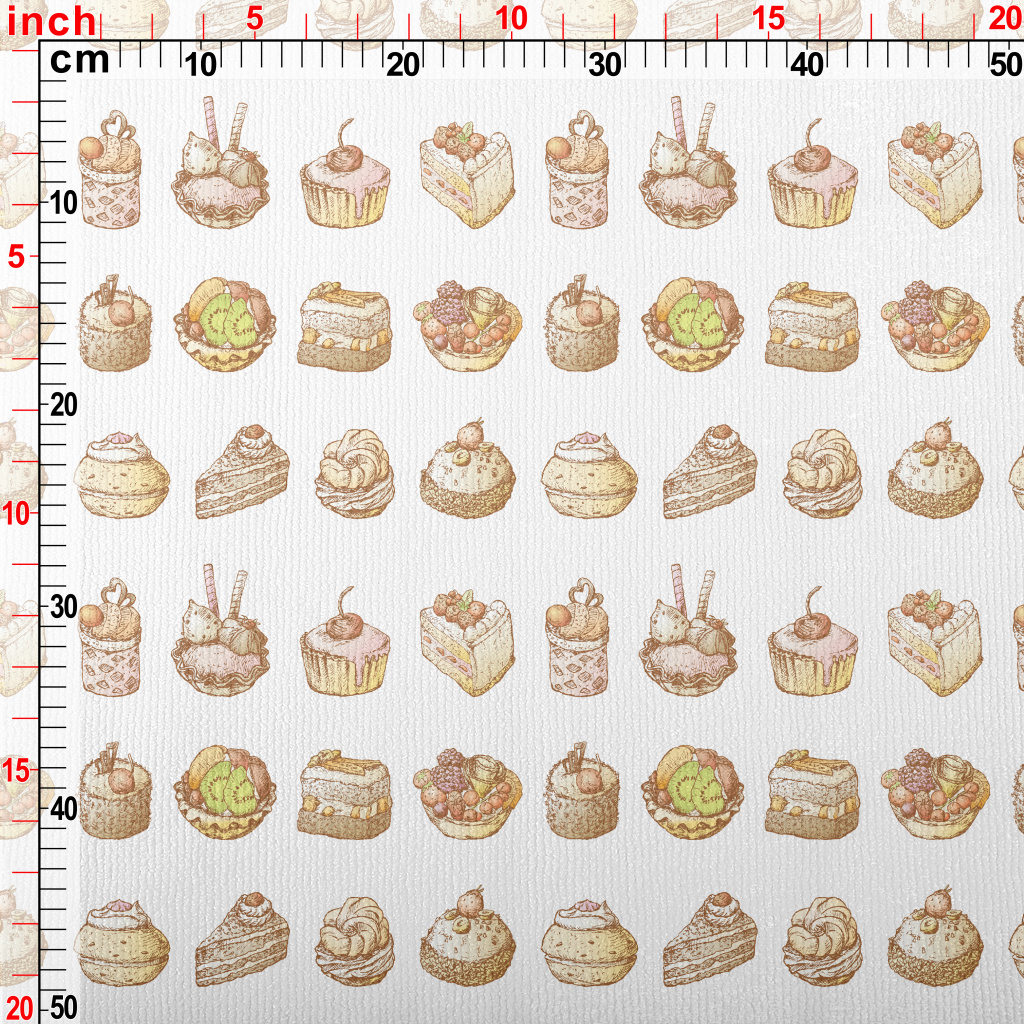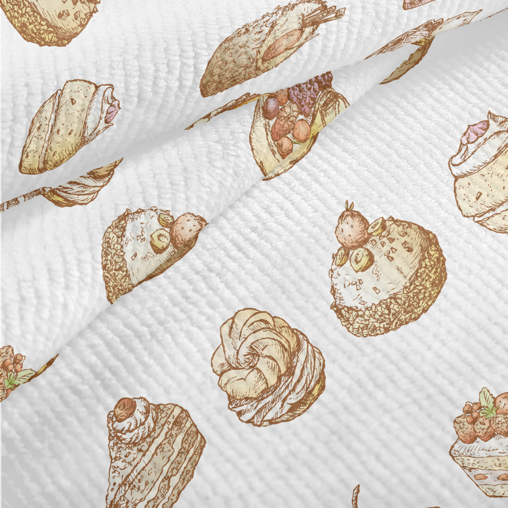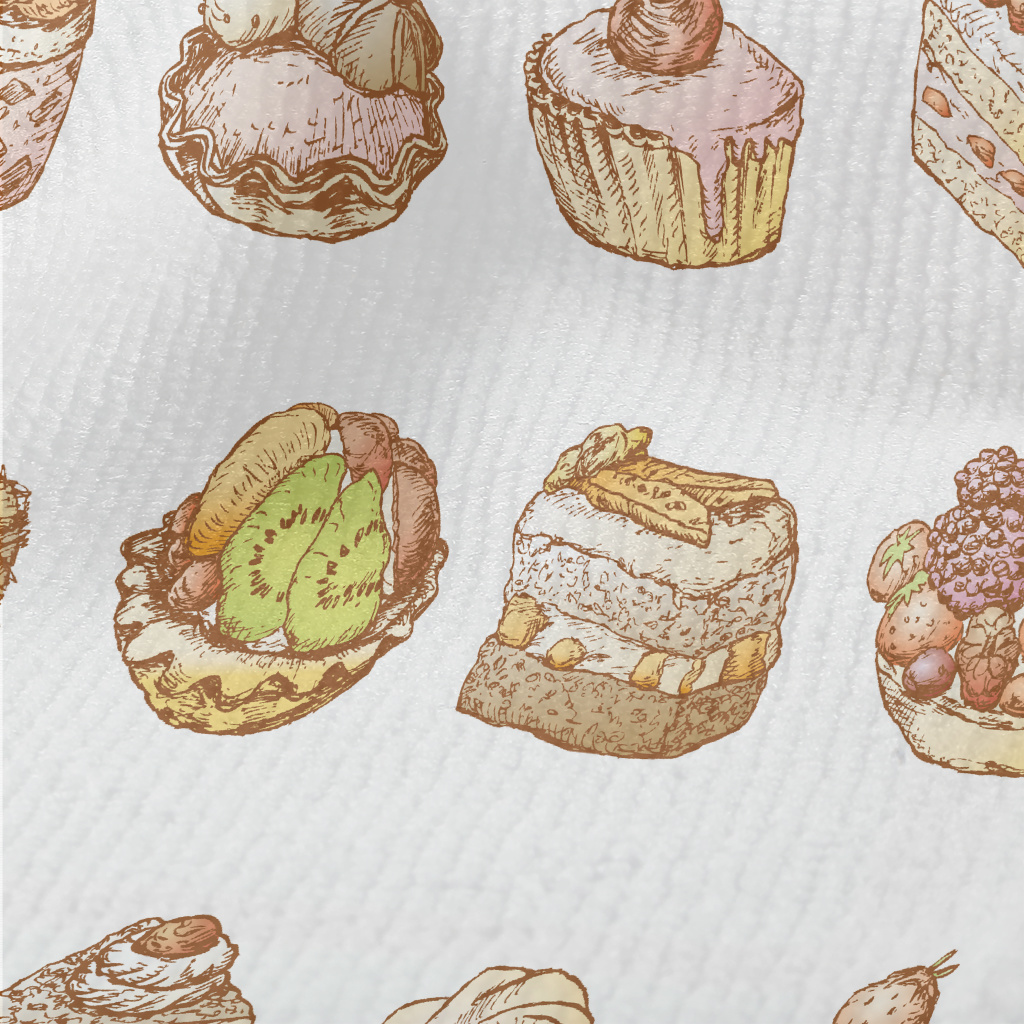 手繪復古風蛋糕甜點毛巾布(幅寬160公分)