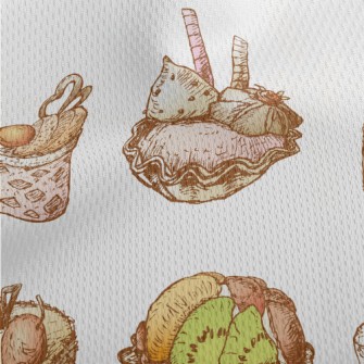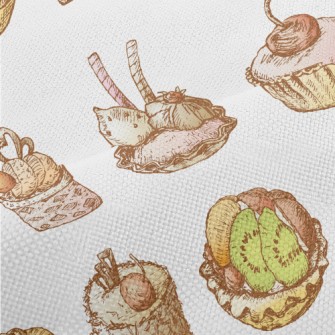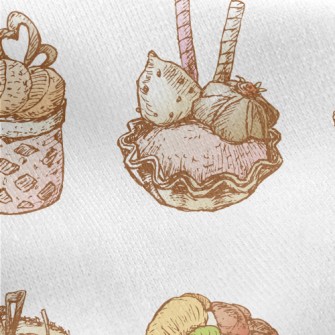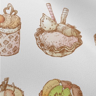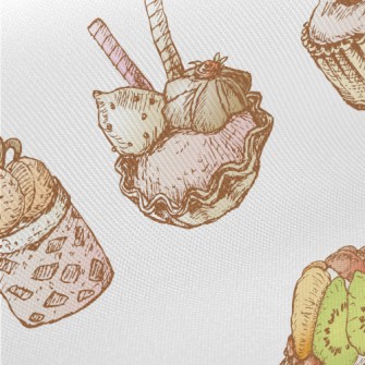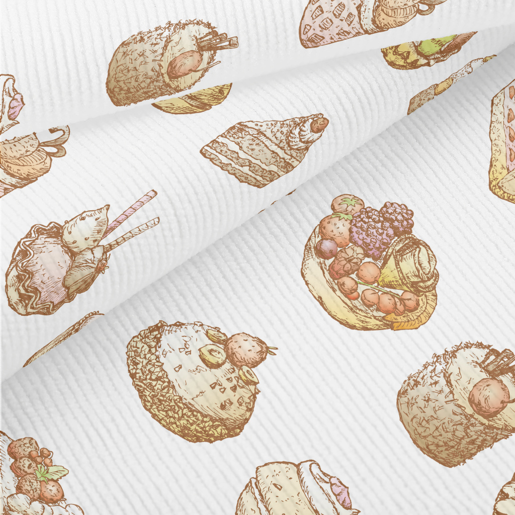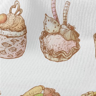 手繪復古風蛋糕甜點燈芯絨(幅寬150公分)