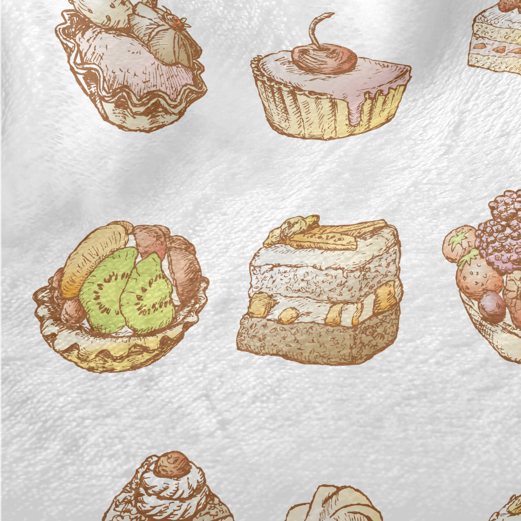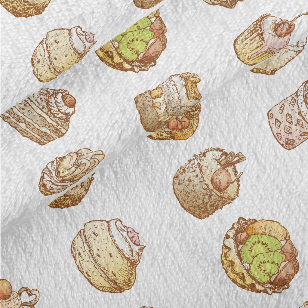 手繪復古風蛋糕甜點法蘭絨(幅寬150公分)