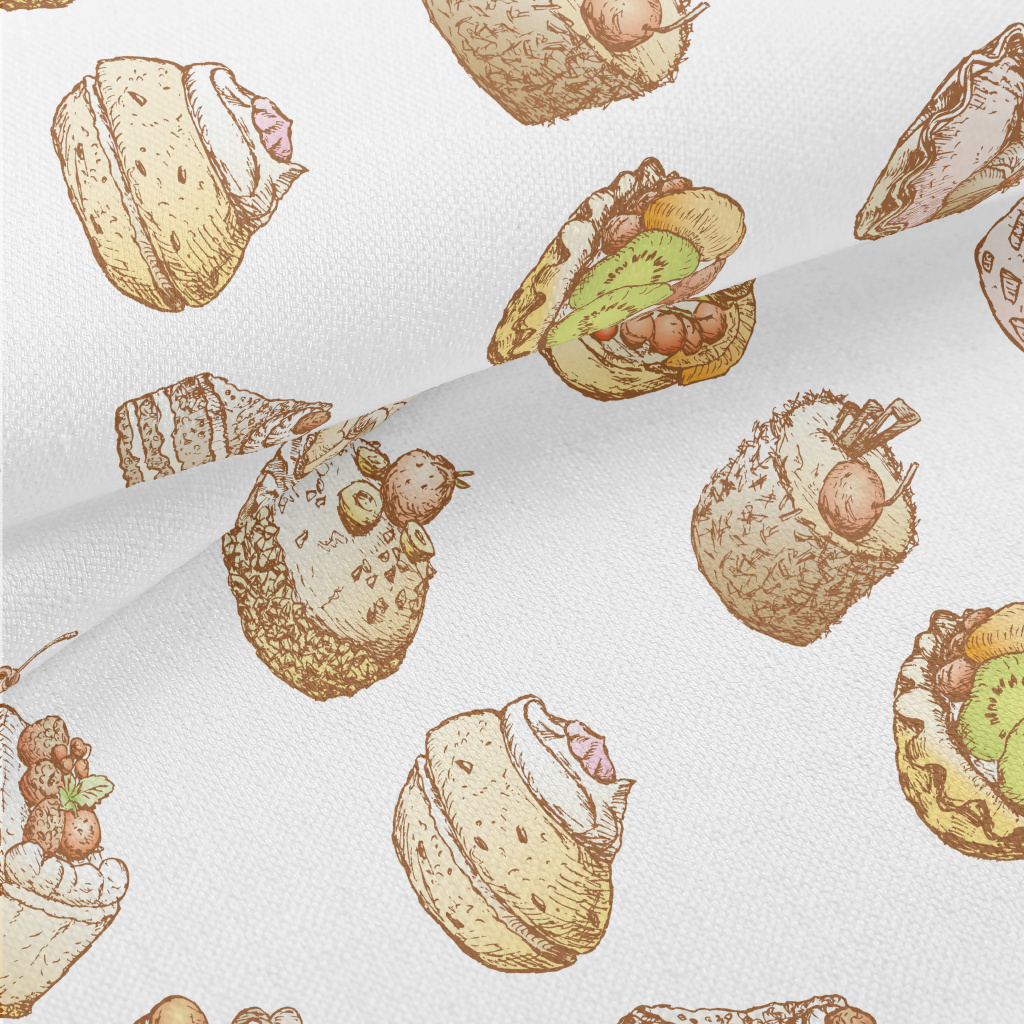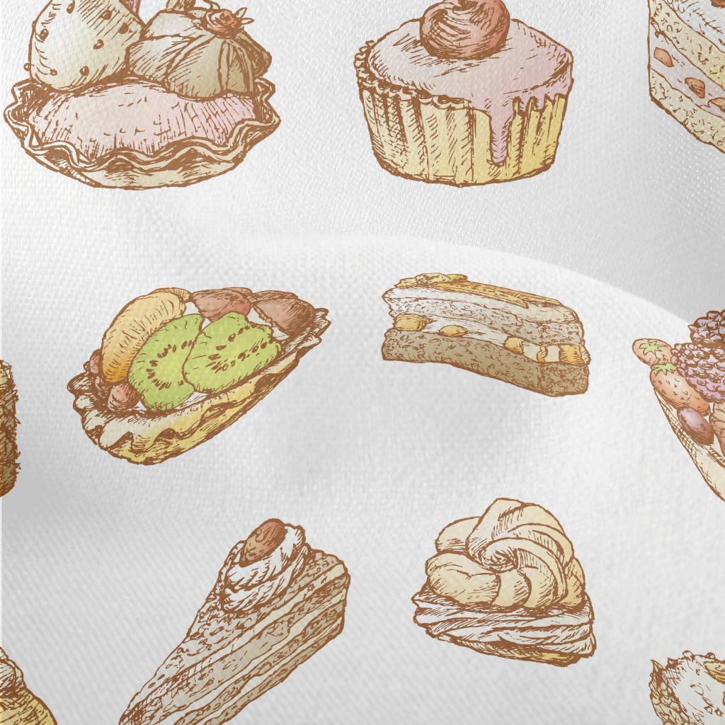 手繪復古風蛋糕甜點竹節麻(幅寬150公分)