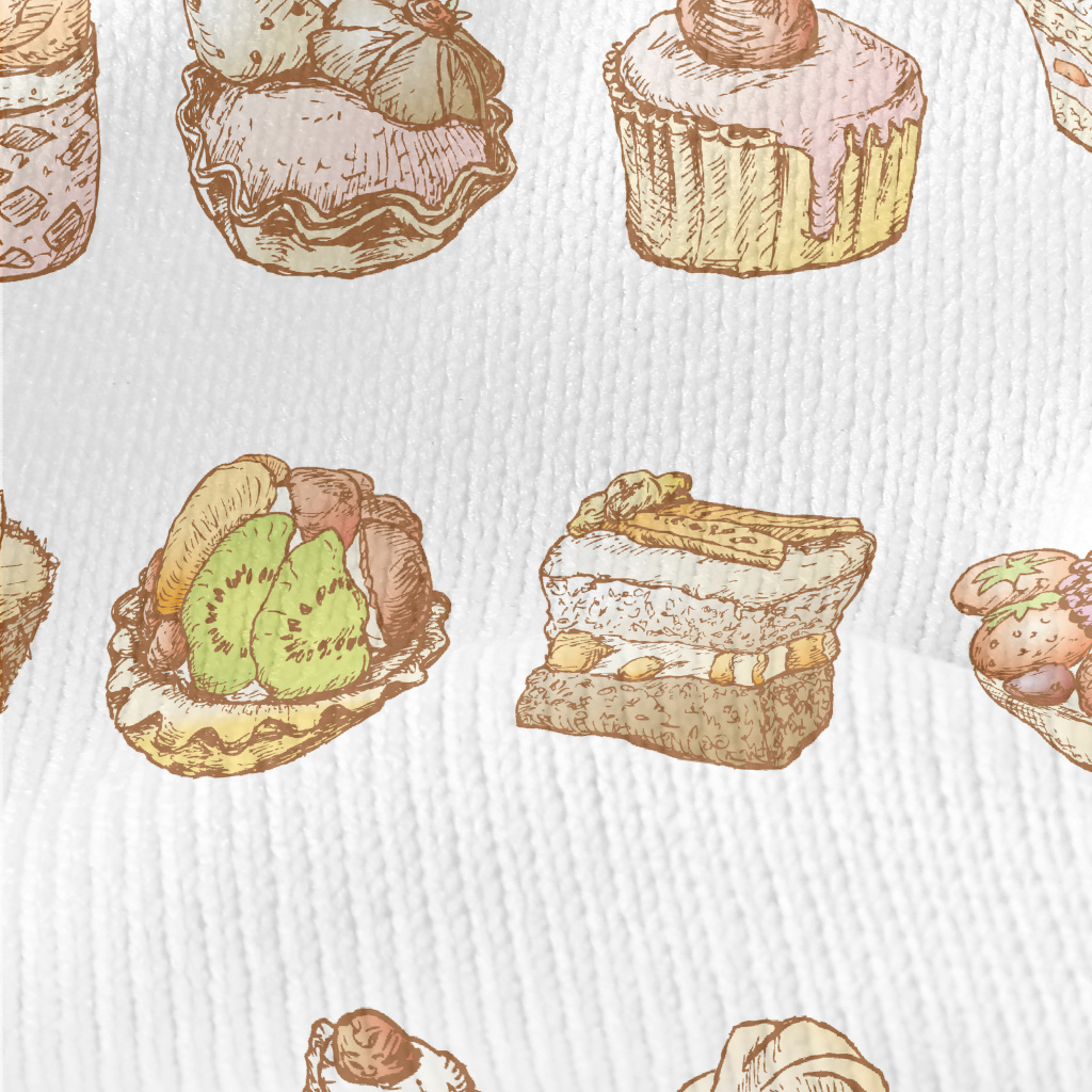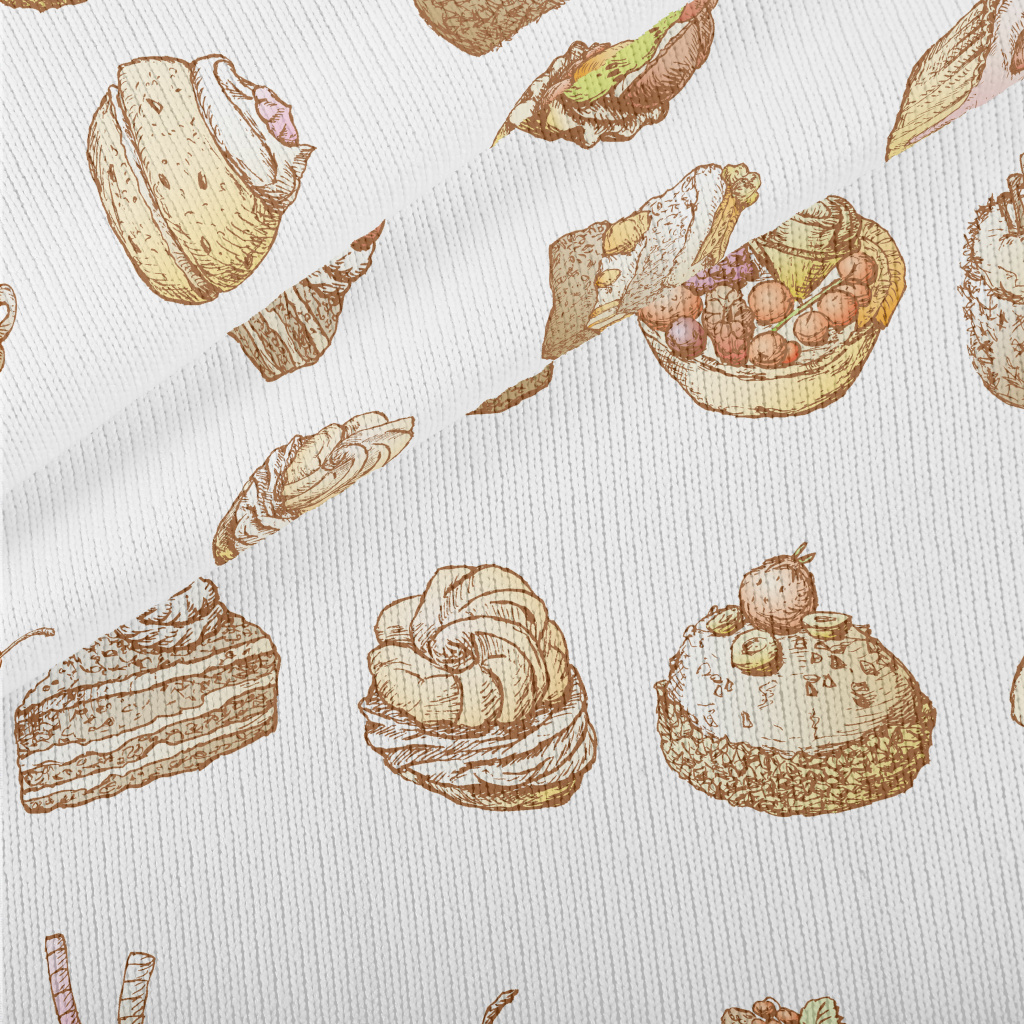 手繪復古風蛋糕甜點仿毛衣布(幅寬150公分)
