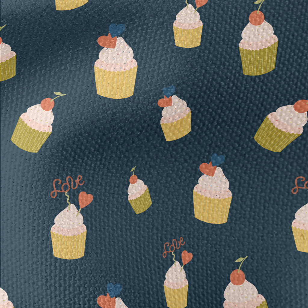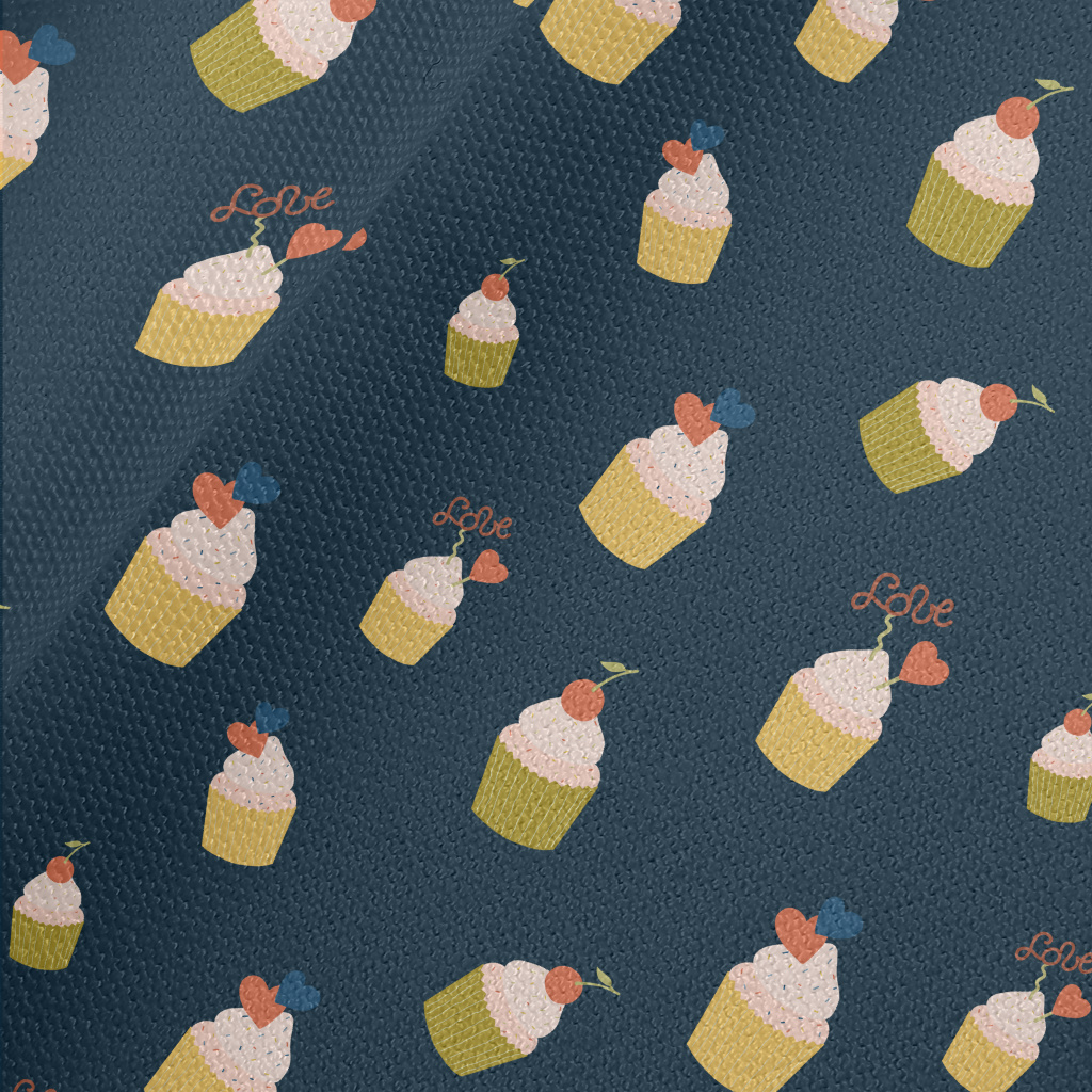 粉色櫻桃和愛心小蛋糕帆布(幅寬150公分)