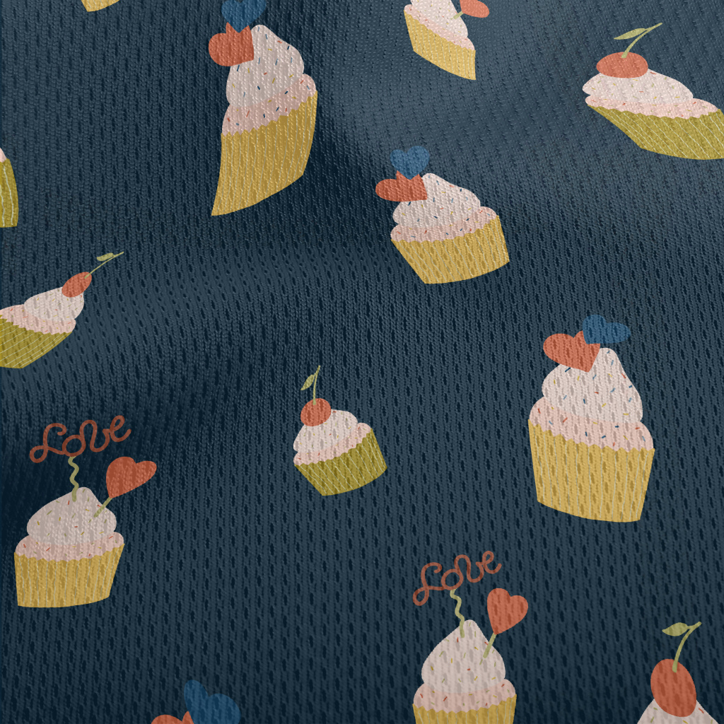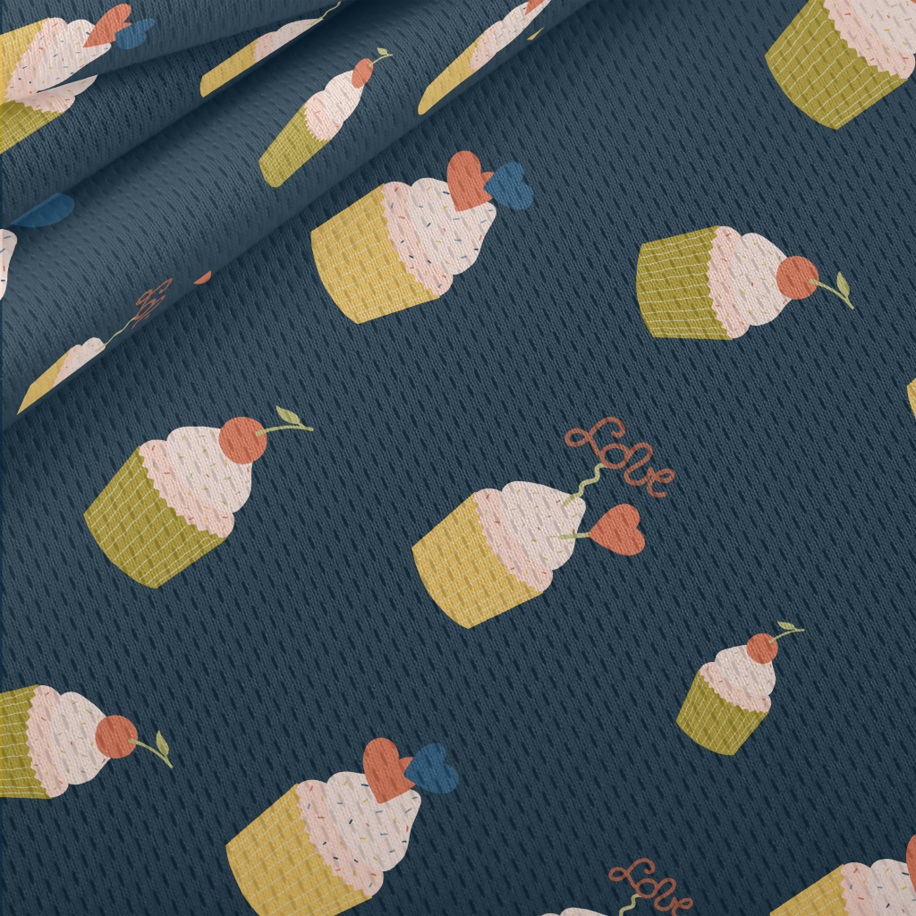 粉色櫻桃和愛心小蛋糕鳥眼布(幅寬160公分)