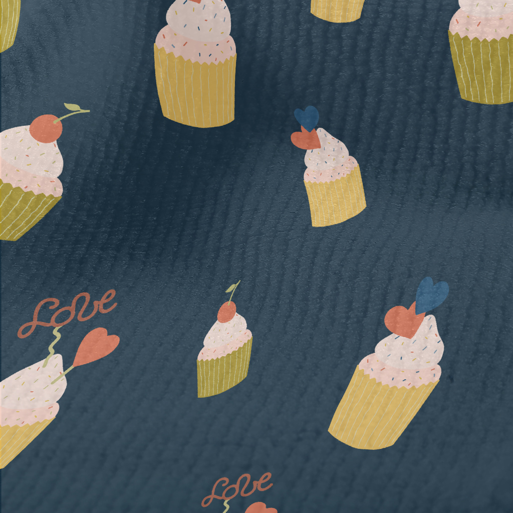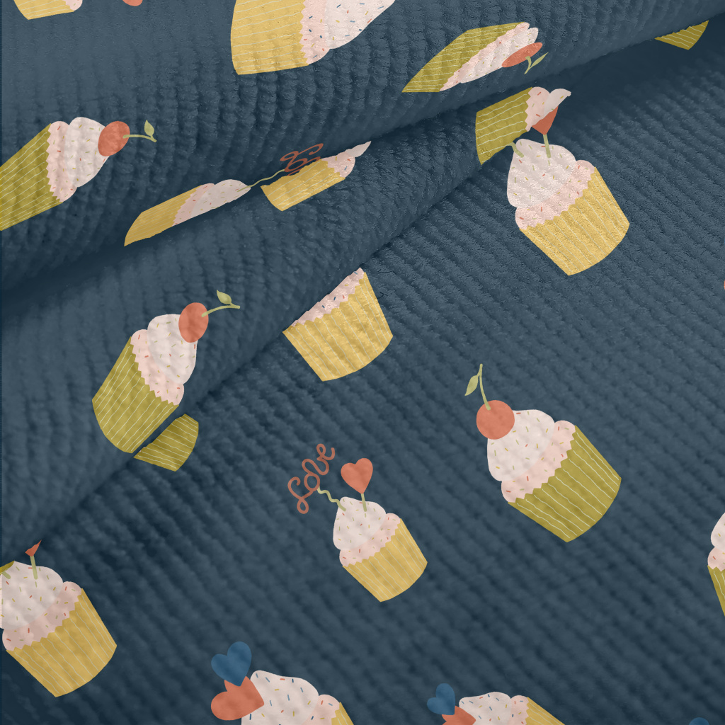 粉色櫻桃和愛心小蛋糕毛巾布(幅寬160公分)