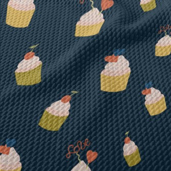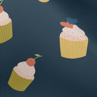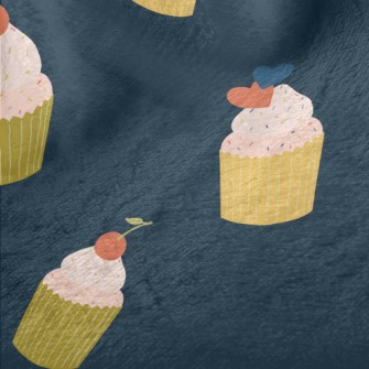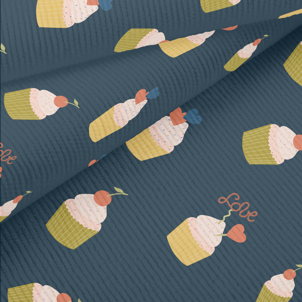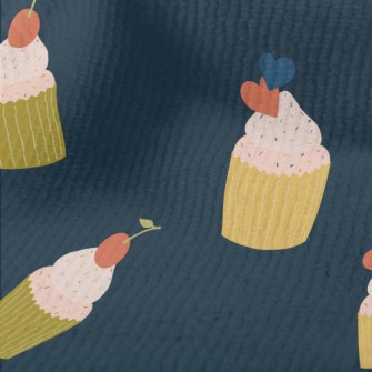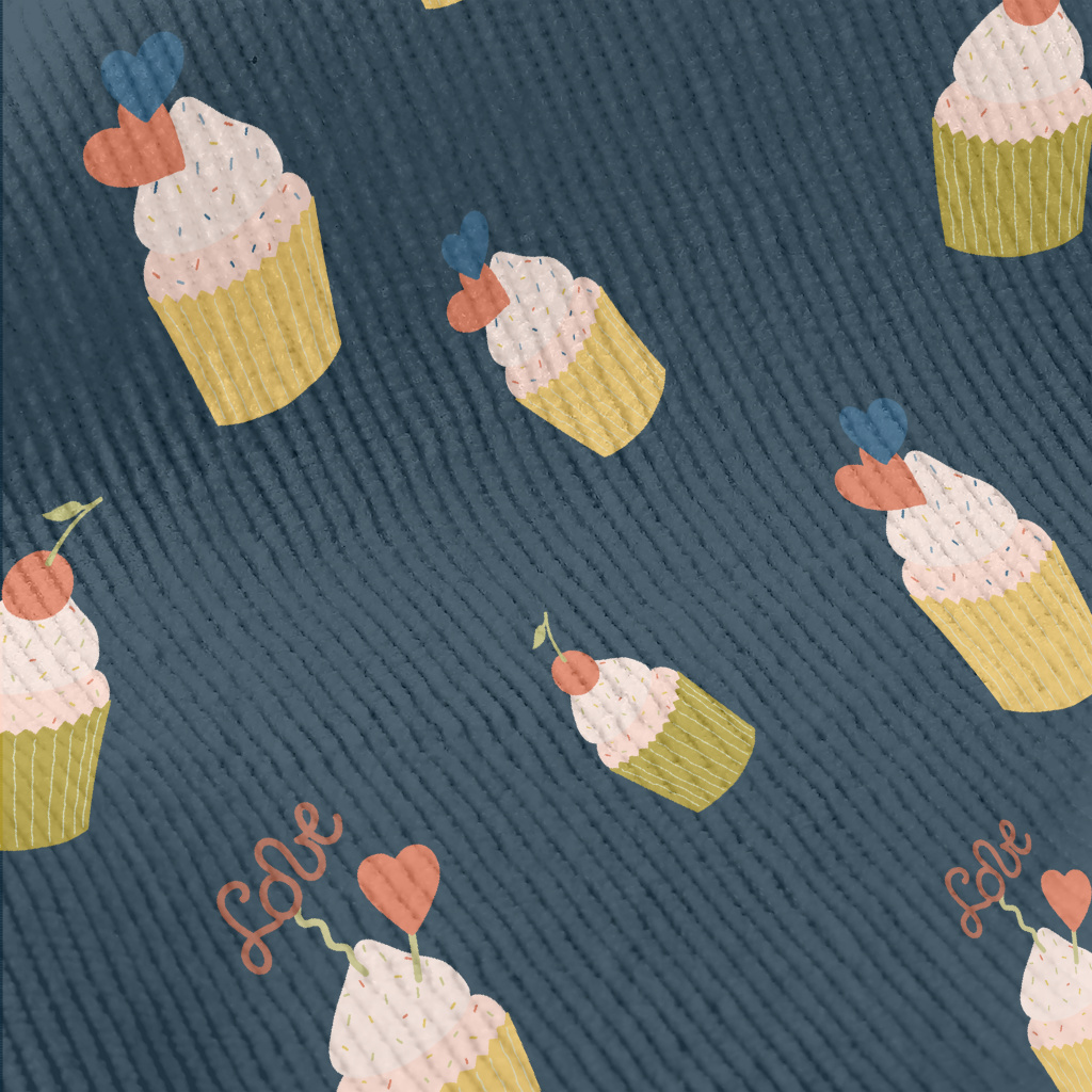 粉色櫻桃和愛心小蛋糕燈芯絨(幅寬150公分)