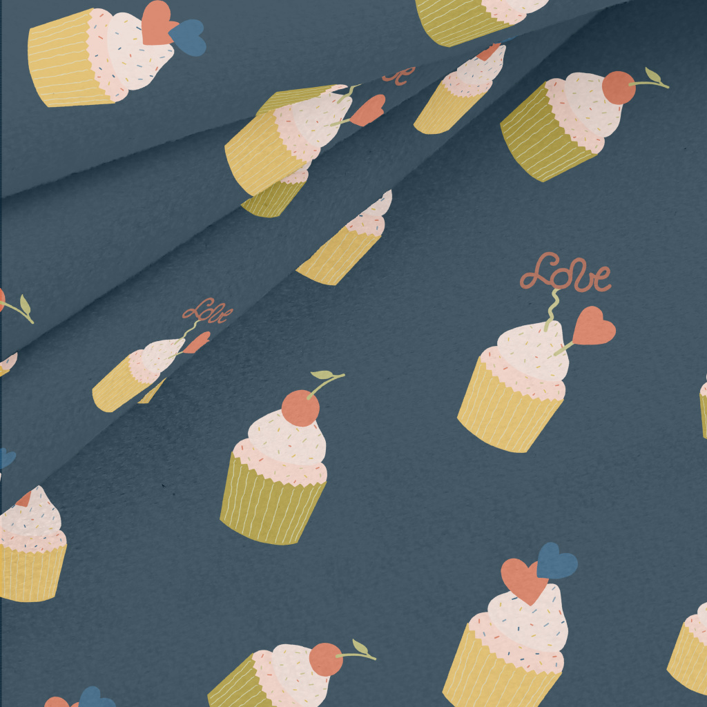 粉色櫻桃和愛心小蛋糕水晶絨(幅寬160公分)