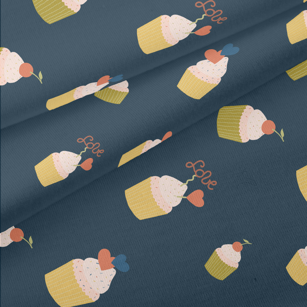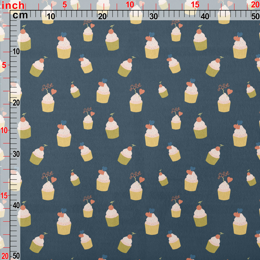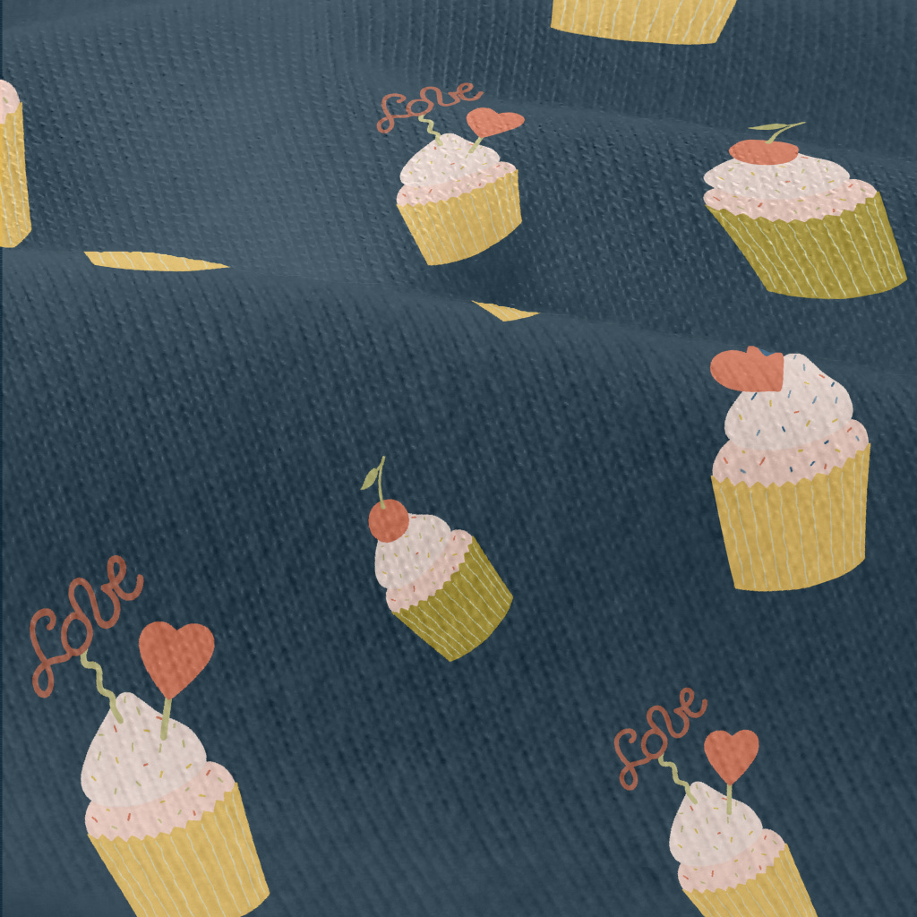 粉色櫻桃和愛心小蛋糕仿棉布(幅寬150公分)