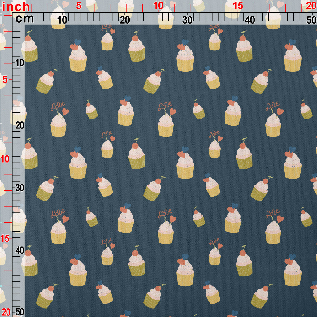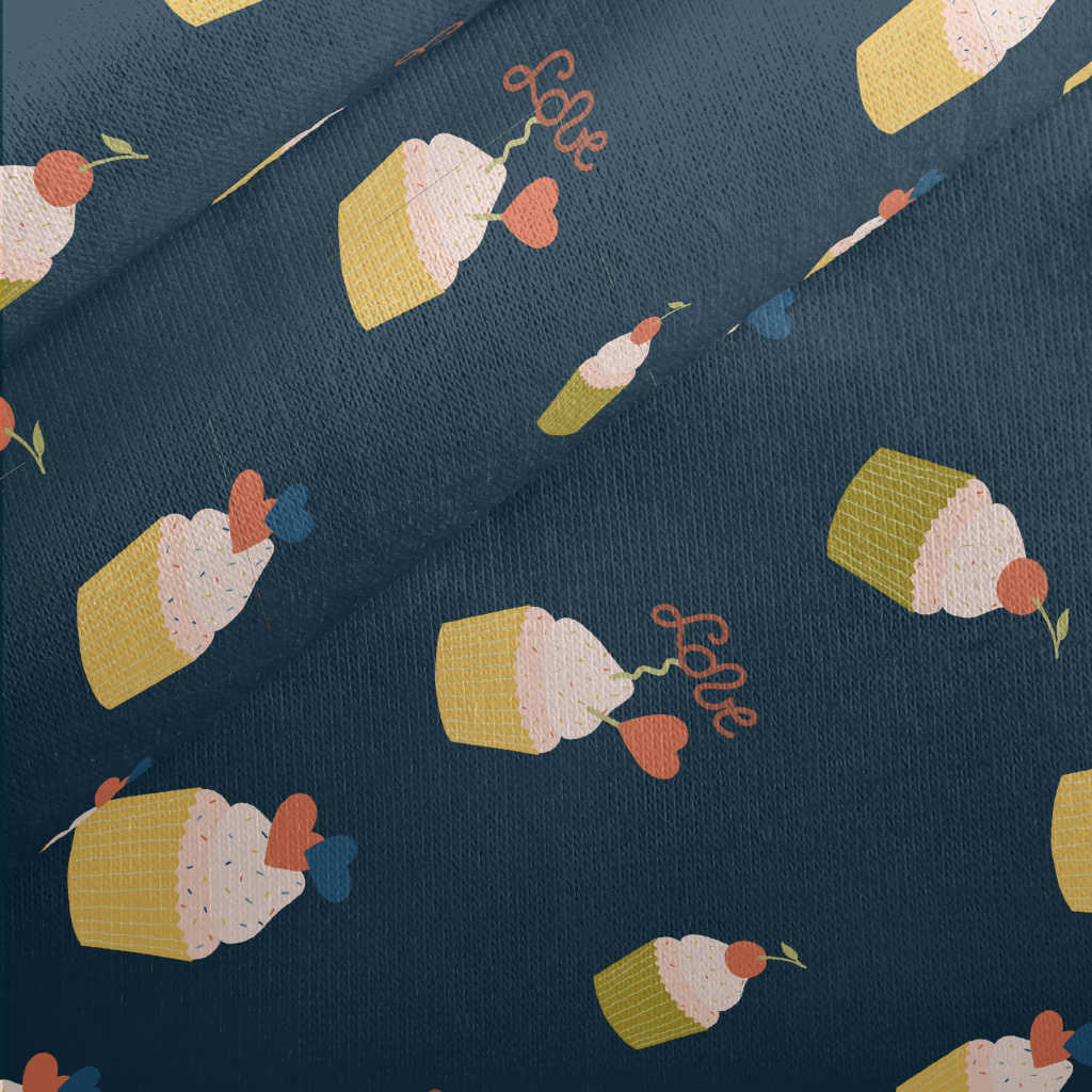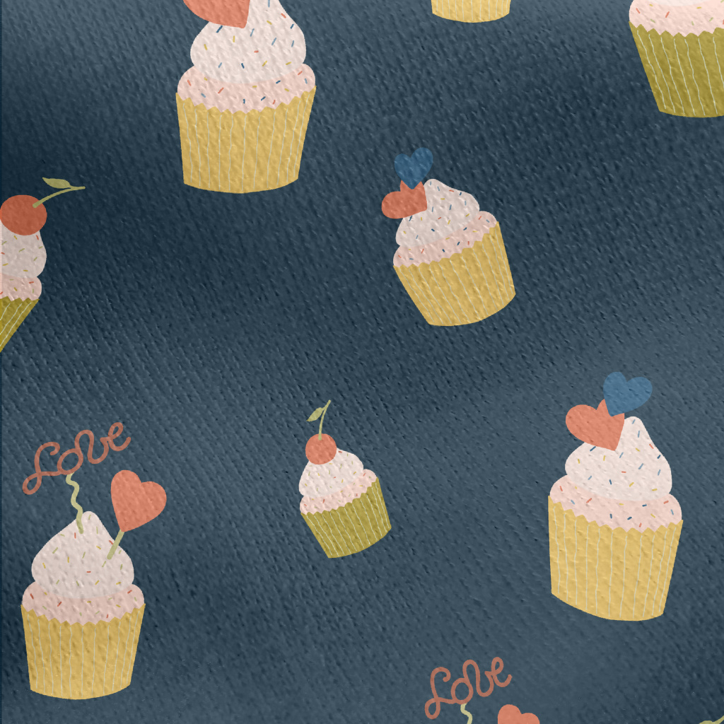 粉色櫻桃和愛心小蛋糕刷毛布(幅寬150公分)