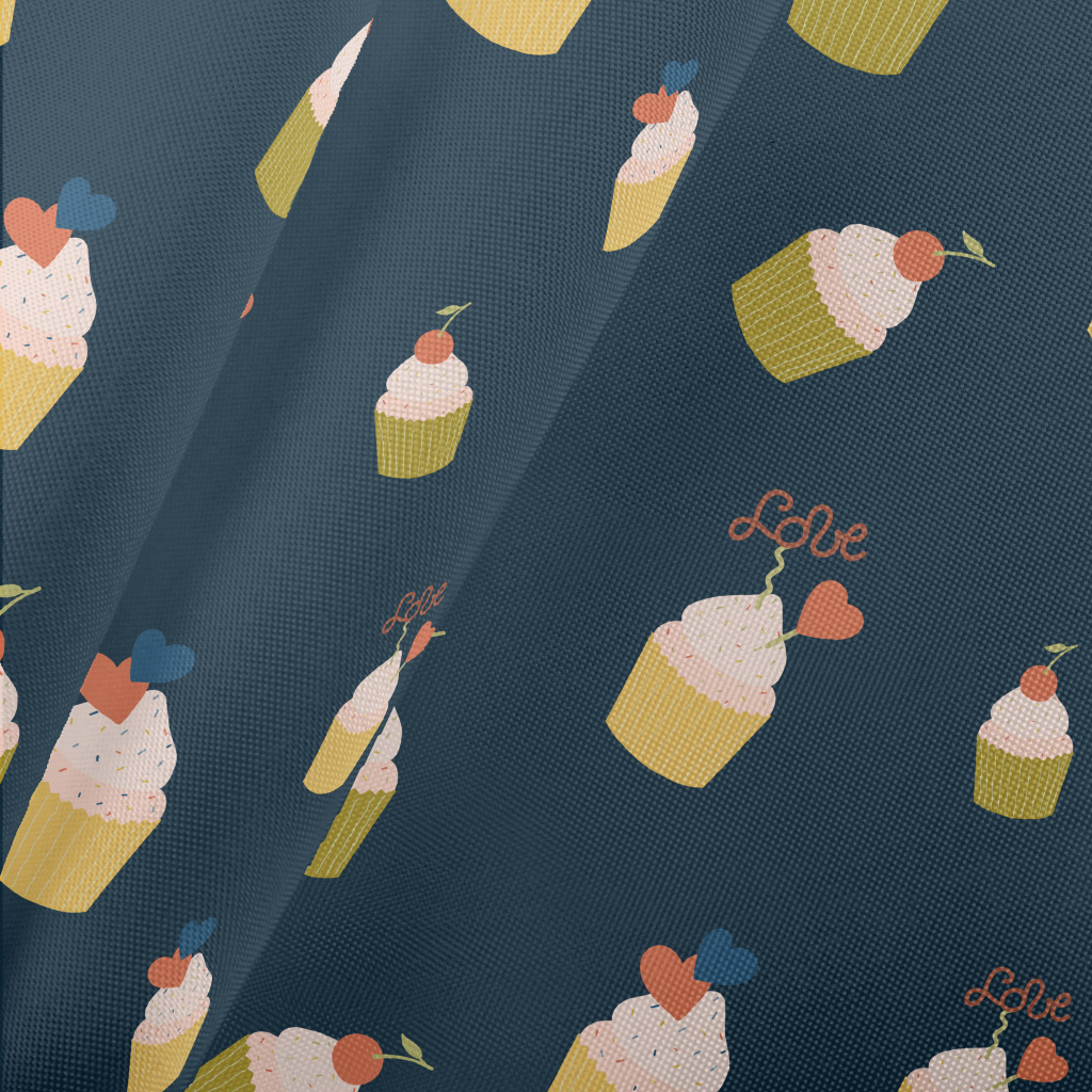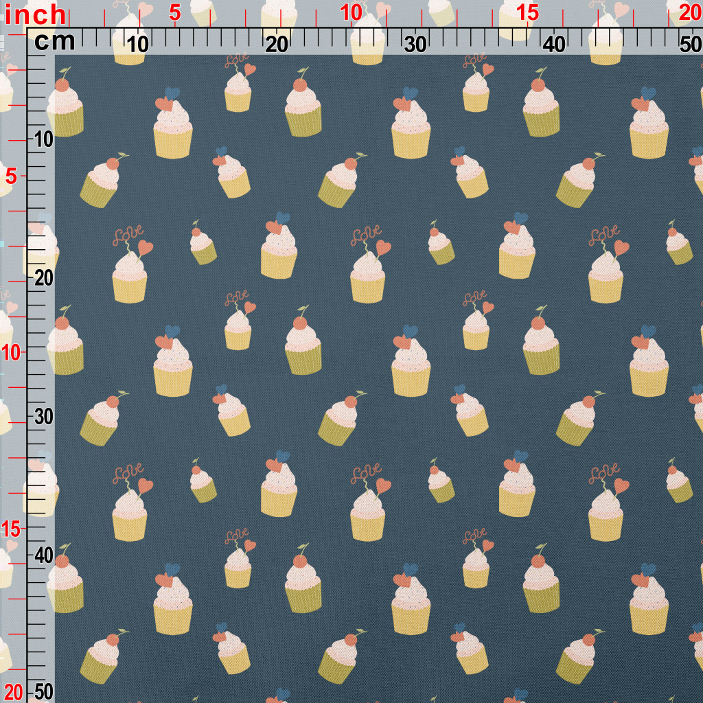 粉色櫻桃和愛心小蛋糕春亞紡(幅寬160公分)