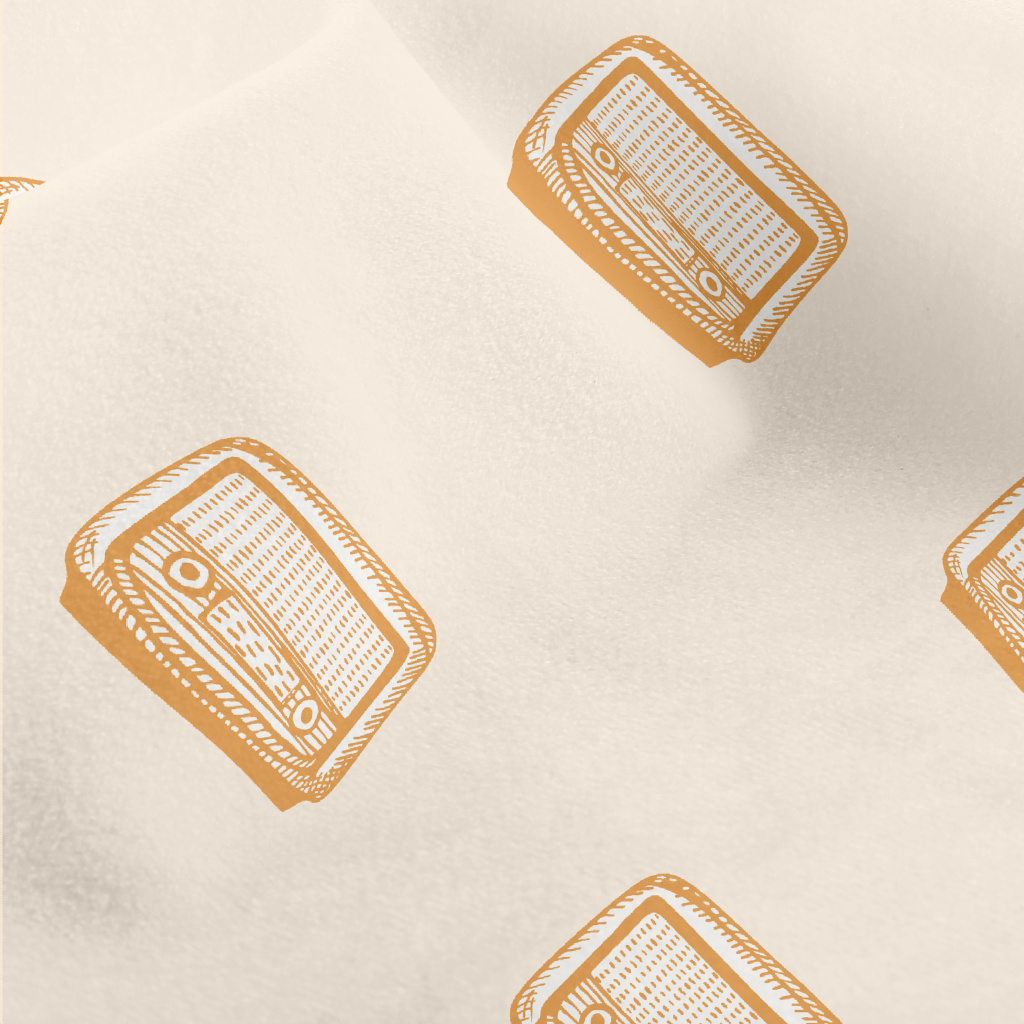 復古手繪收音機水晶絨(幅寬160公分)