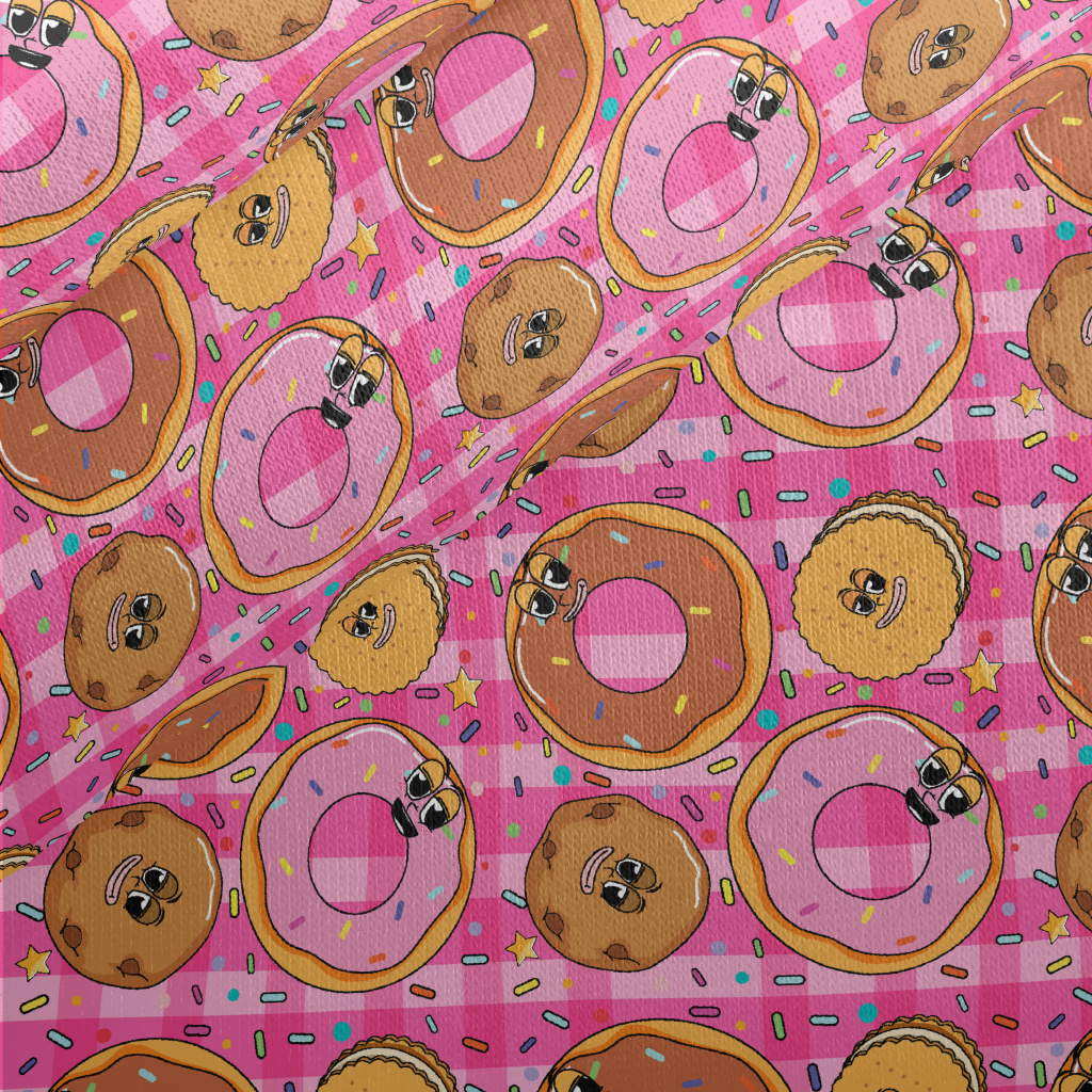 美式表情甜甜圈餅乾刷毛布(幅寬150公分)