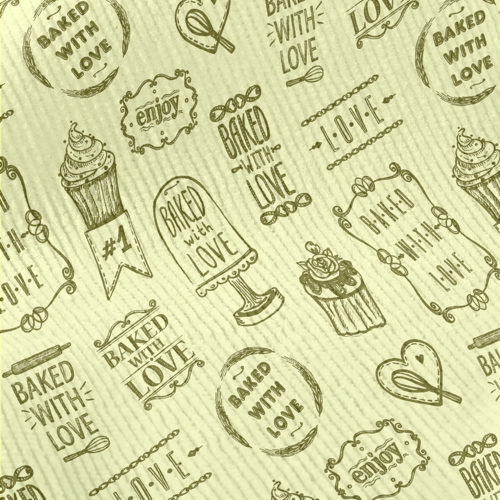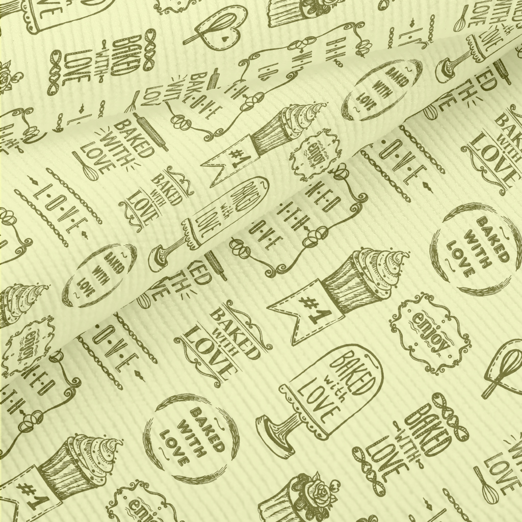 手寫愛情文字與蛋糕燈芯絨(幅寬150公分)