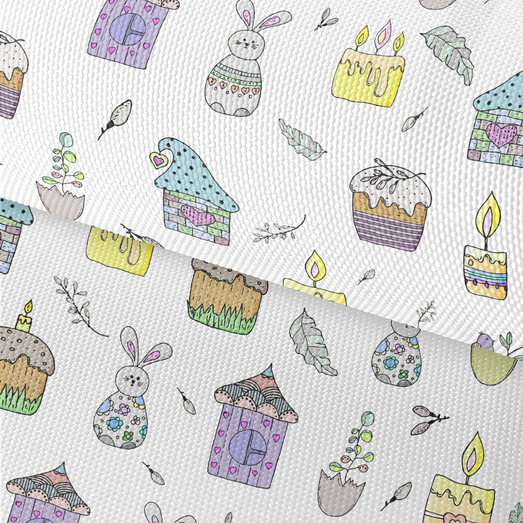 彩色房屋蛋糕兔子牛津布(幅寬150公分)
