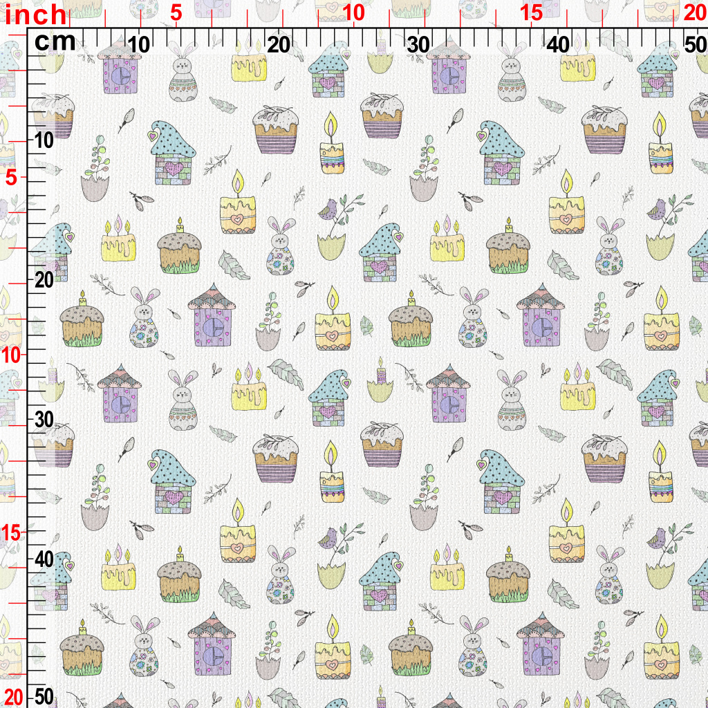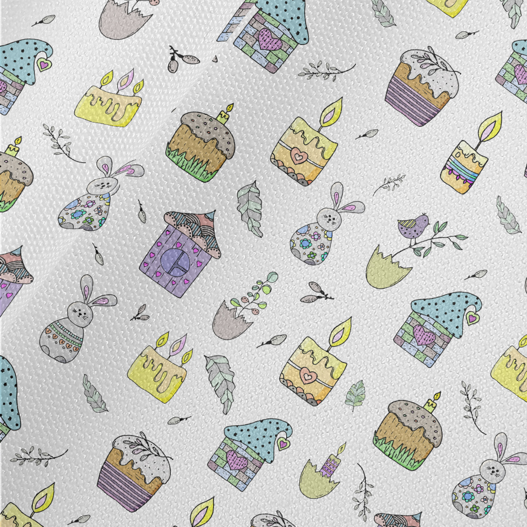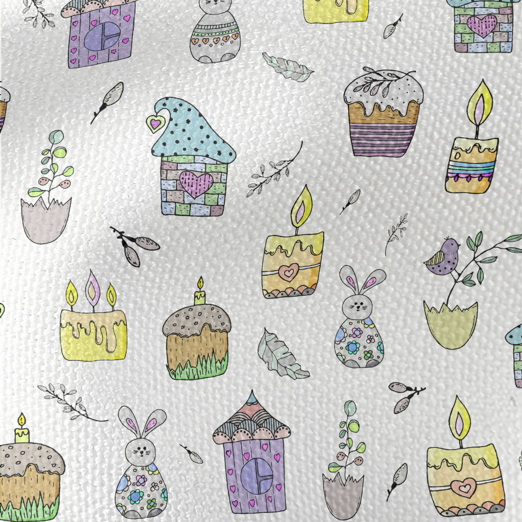 彩色房屋蛋糕兔子帆布(幅寬150公分)