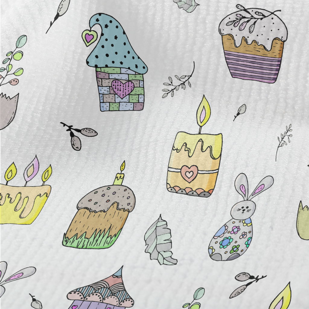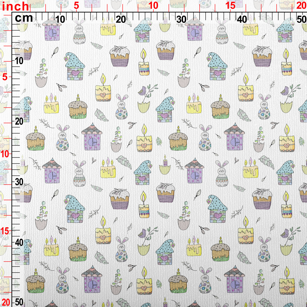 彩色房屋蛋糕兔子毛巾布(幅寬160公分)