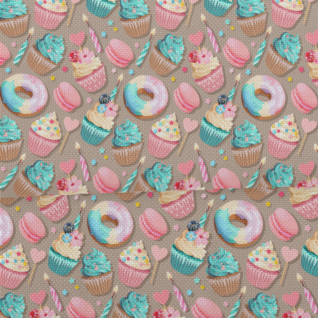 精緻杯子蛋糕和甜點麻布(幅寬150公分)