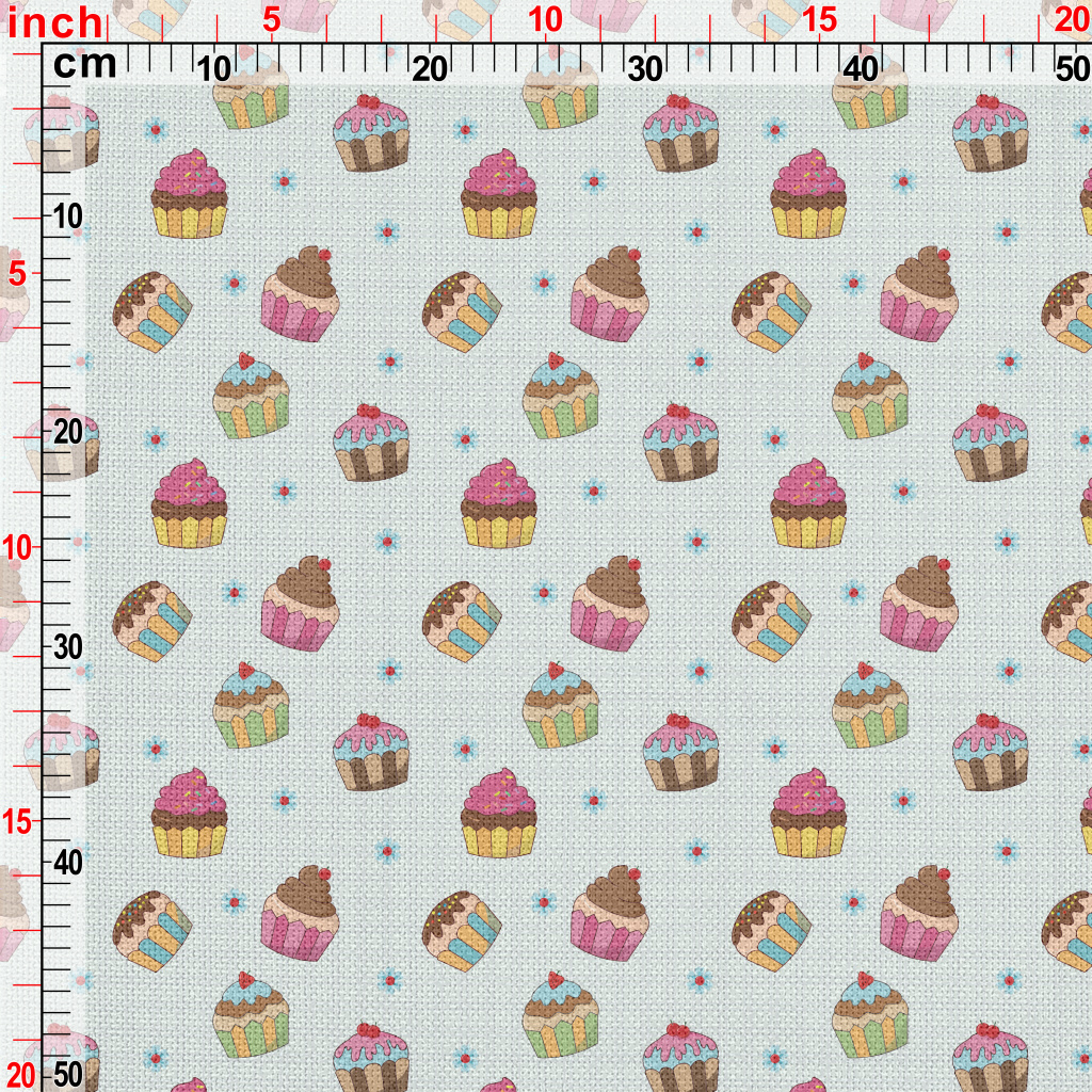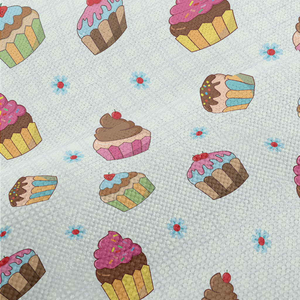 可愛各種口味小蛋糕麻布(幅寬150公分)
