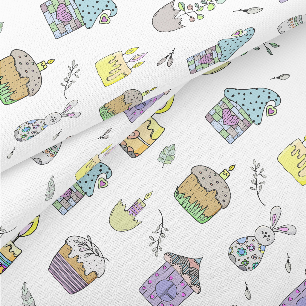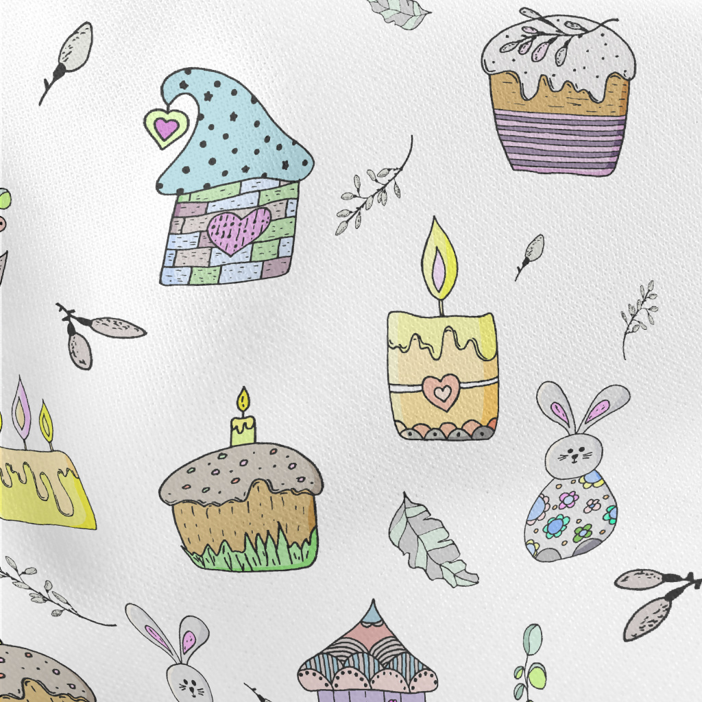 彩色房屋蛋糕兔子羅馬布(幅寬160公分)