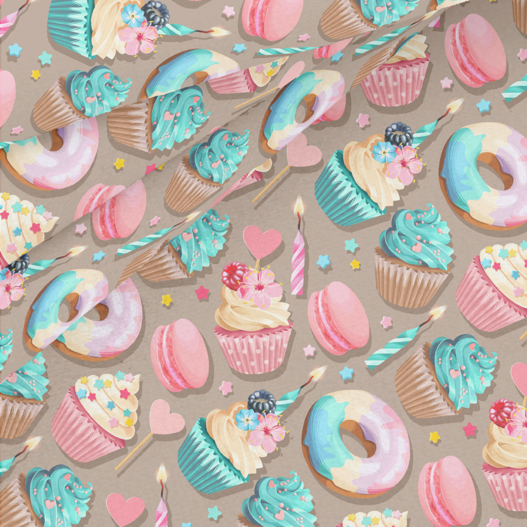 精緻杯子蛋糕和甜點水晶絨(幅寬160公分)
