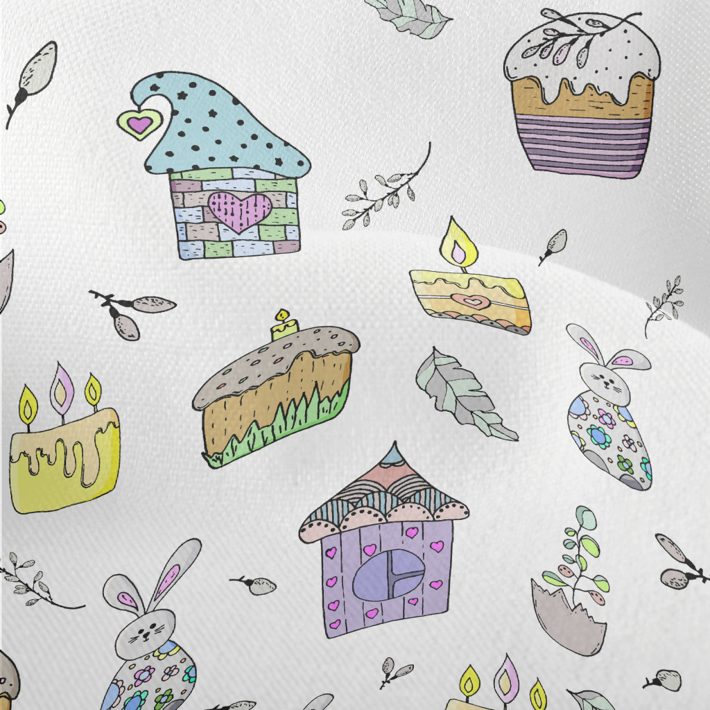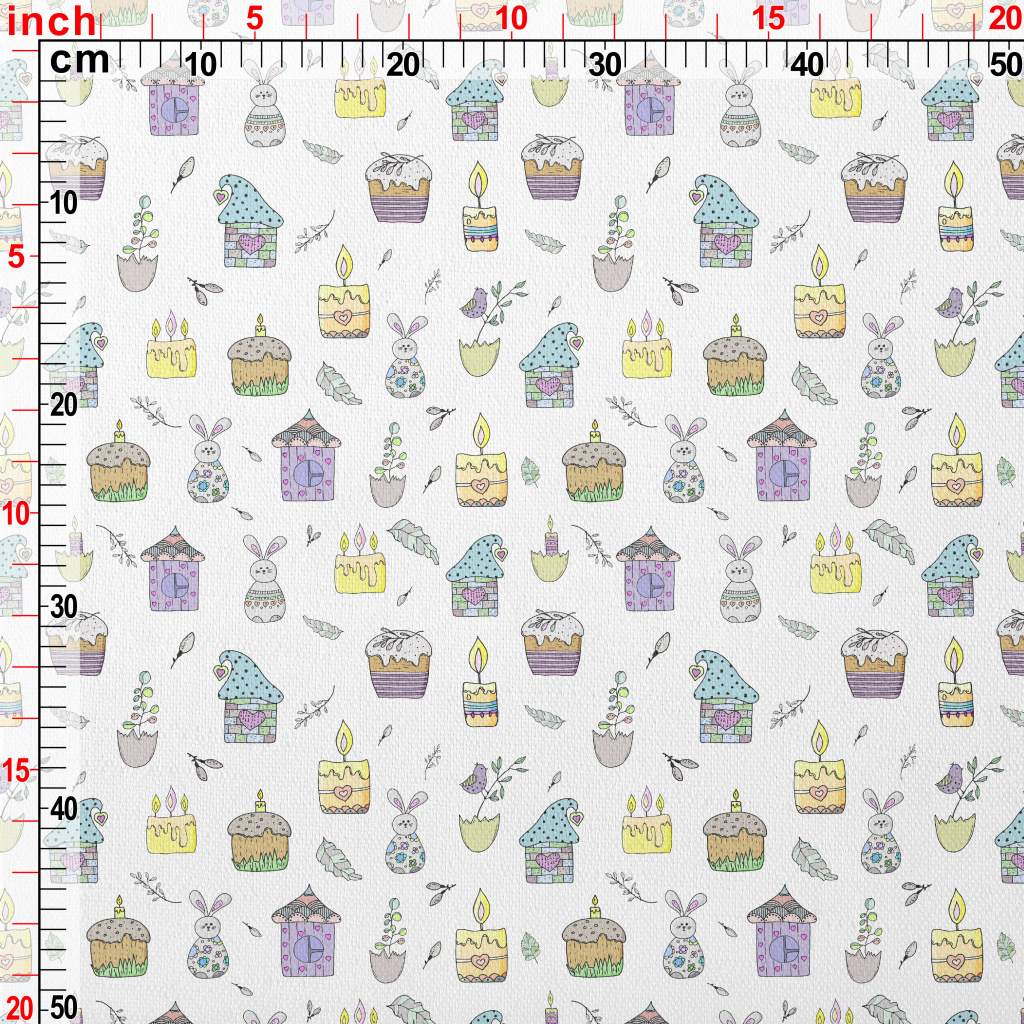 彩色房屋蛋糕兔子竹節麻(幅寬150公分)