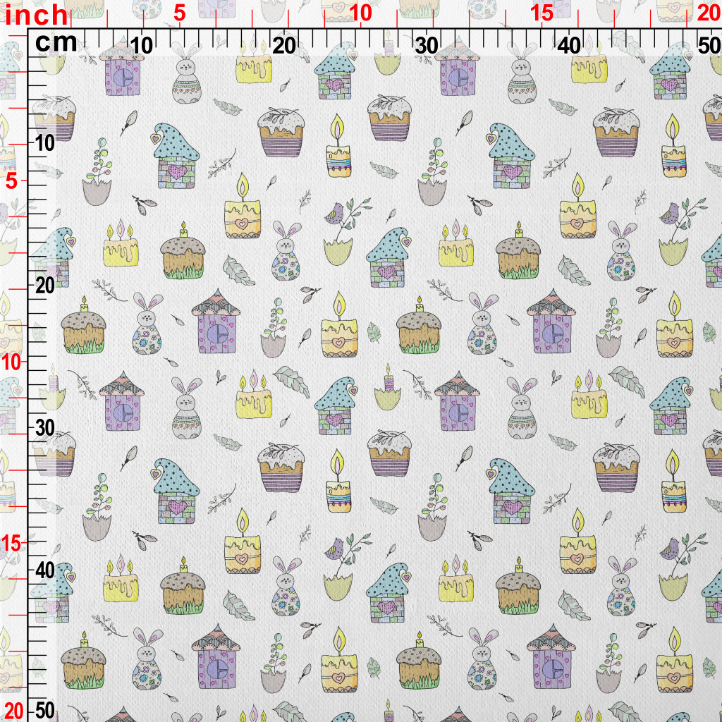 彩色房屋蛋糕兔子刷毛布(幅寬150公分)