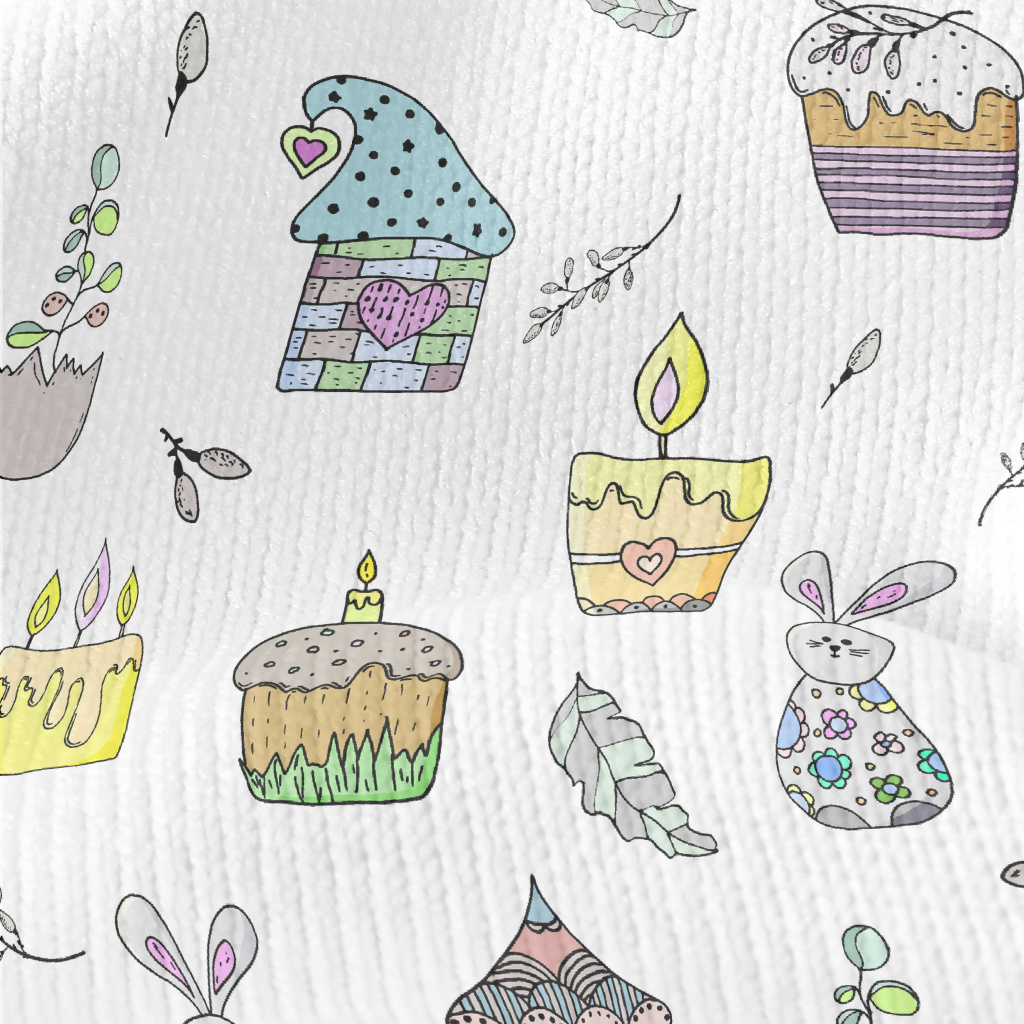 彩色房屋蛋糕兔子仿毛衣布(幅寬150公分)