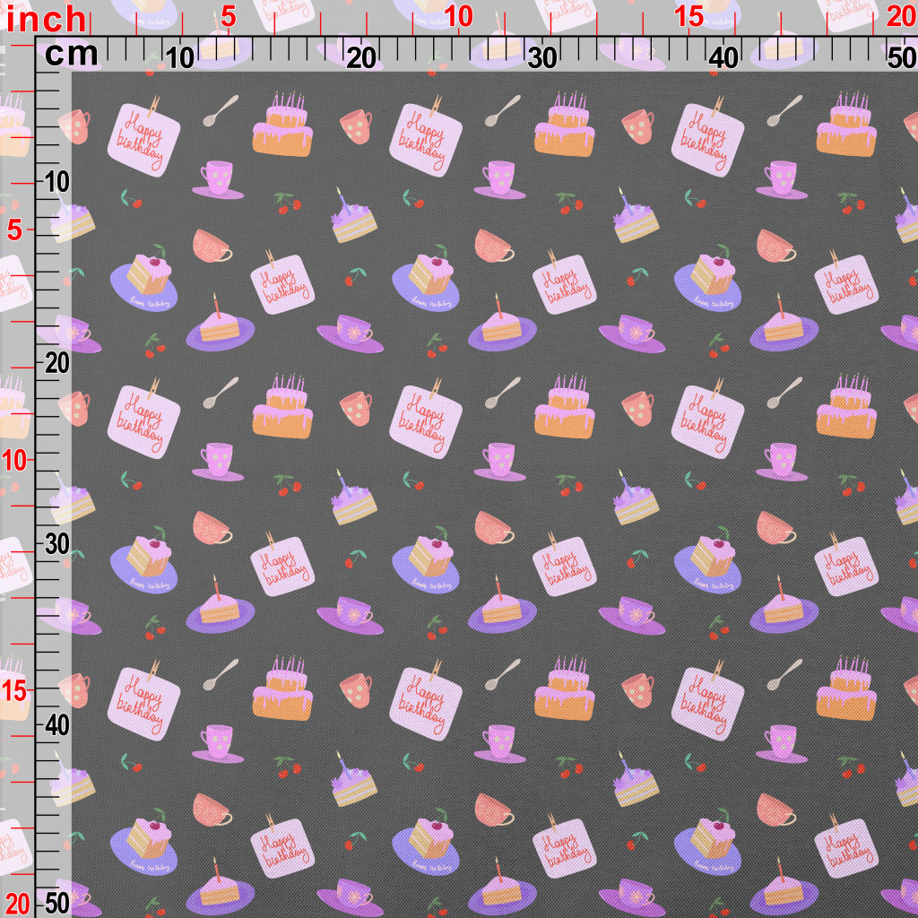 慶生蛋糕與杯子櫻桃春亞紡(幅寬160公分)