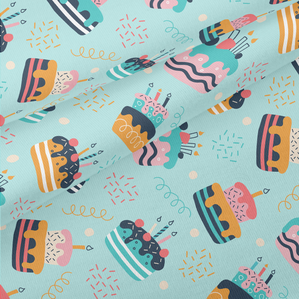 彩色生日蛋糕和線條仿棉布(幅寬150公分)