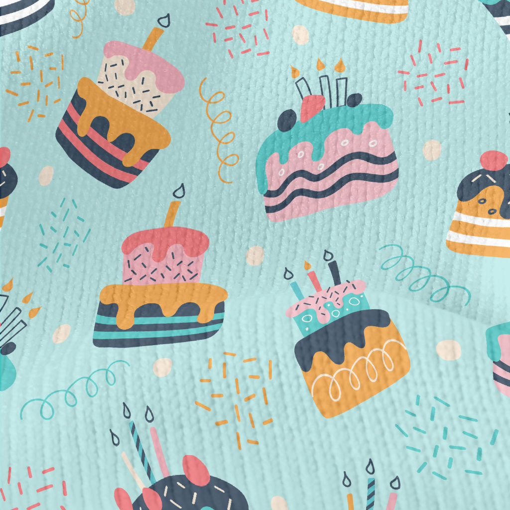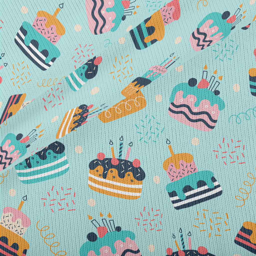 彩色生日蛋糕和線條仿毛衣布(幅寬150公分)