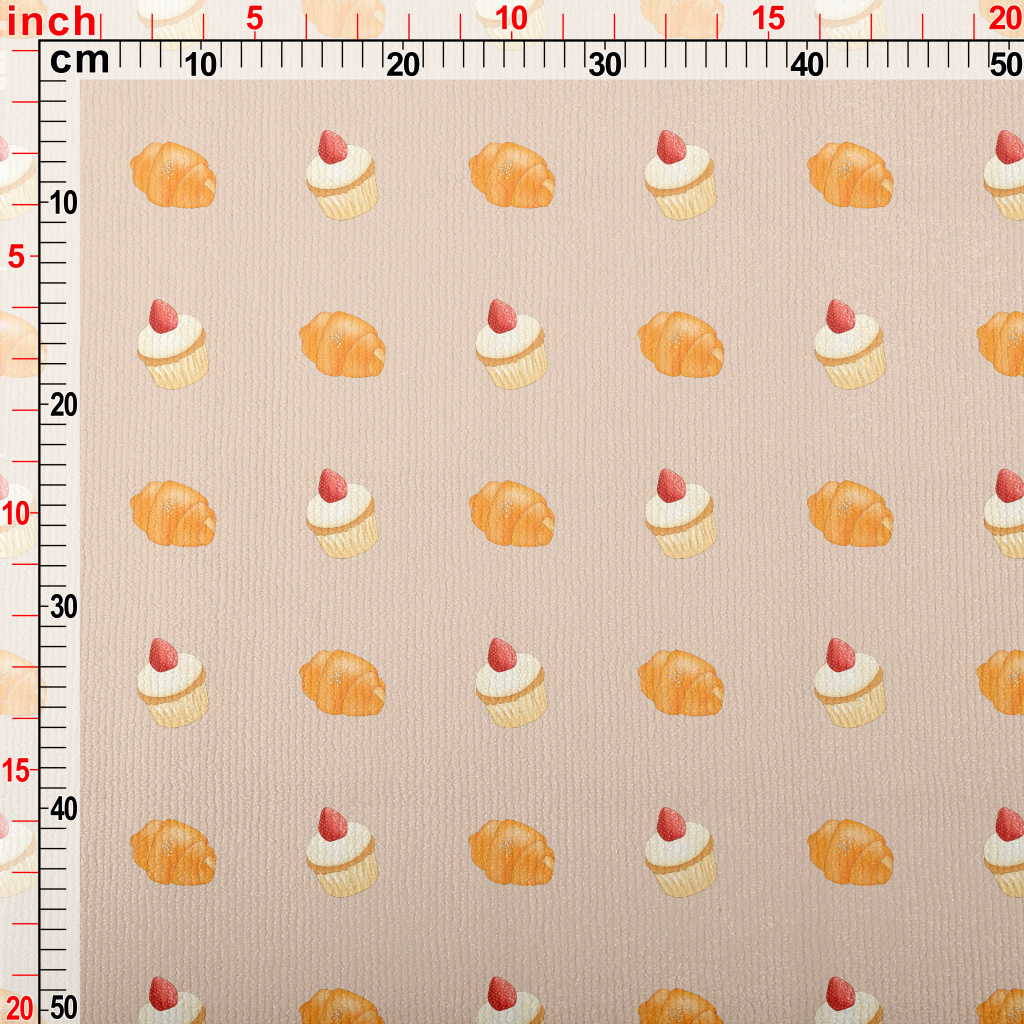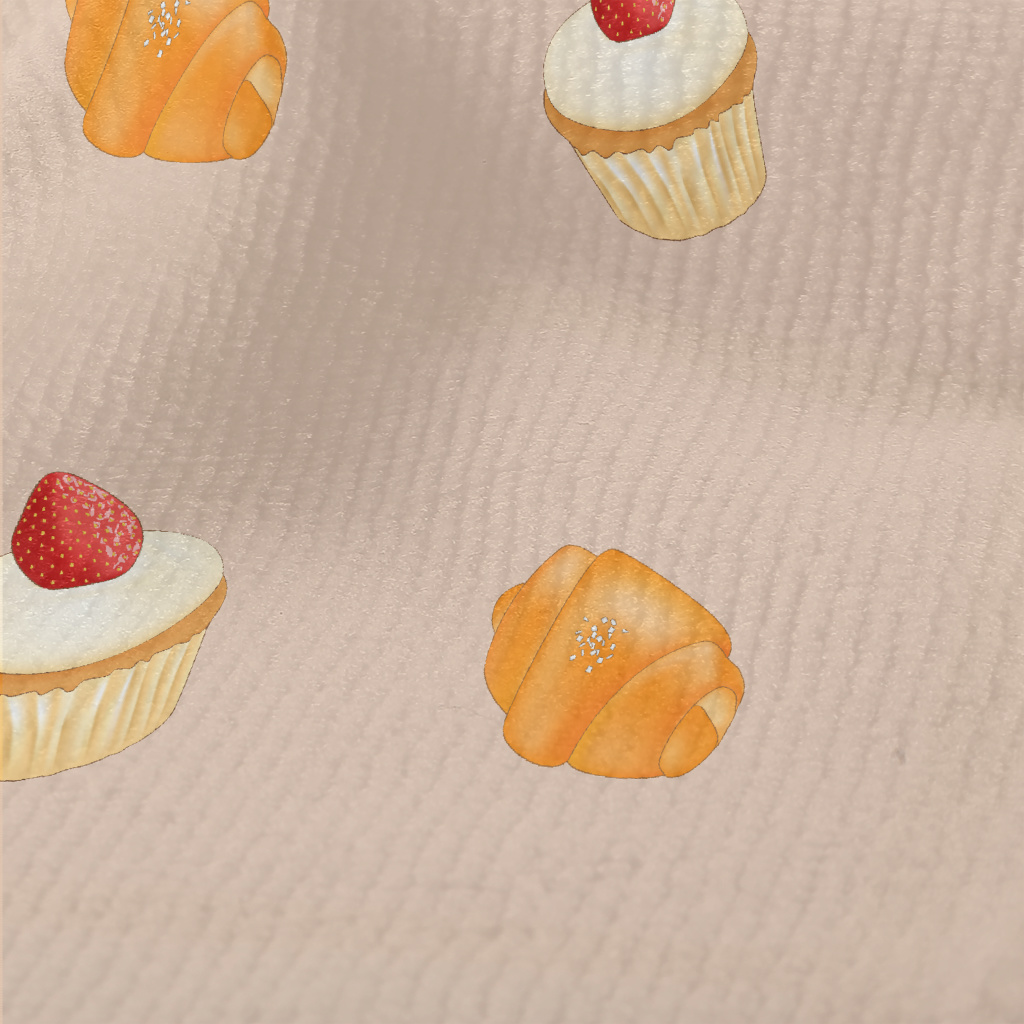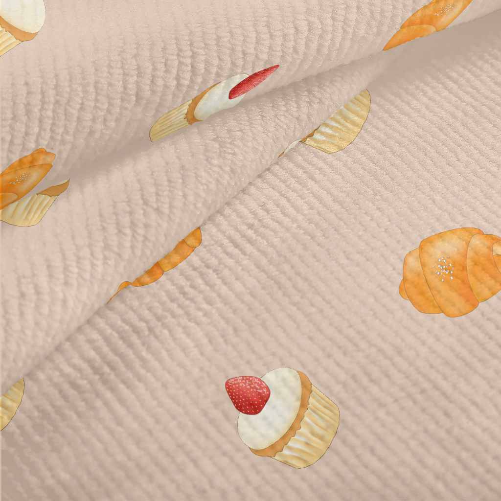 新鮮麵包和草莓杯子蛋糕毛巾布(幅寬160公分)