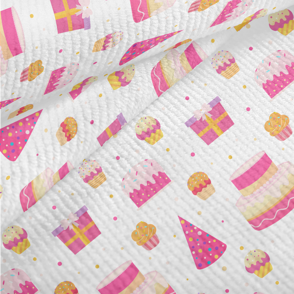 粉色生日蛋糕和禮物毛巾布(幅寬160公分)
