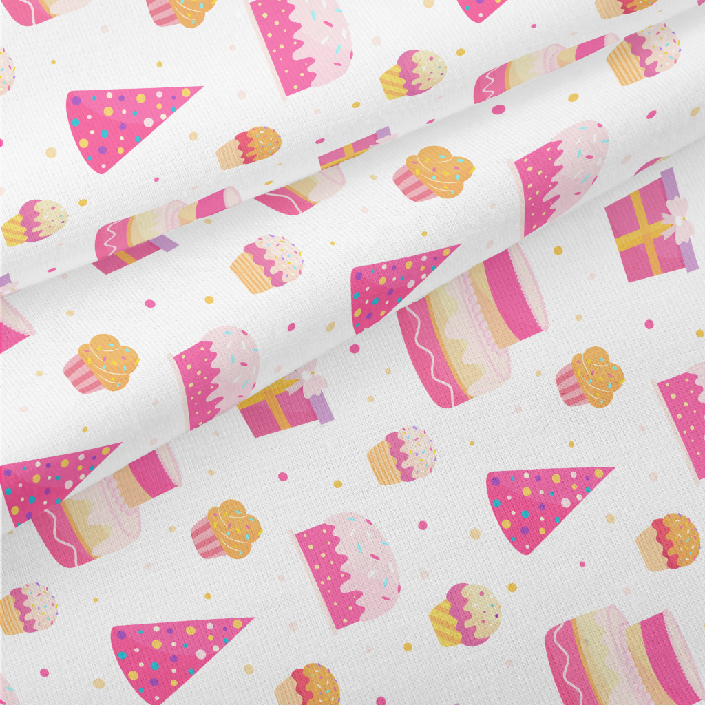 粉色生日蛋糕和禮物仿棉布(幅寬150公分)