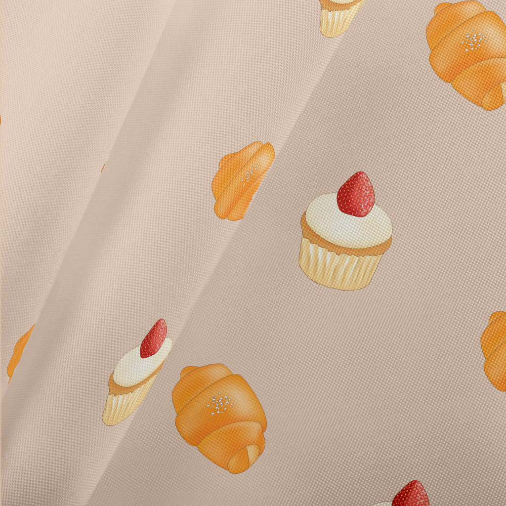 新鮮麵包和草莓杯子蛋糕春亞紡(幅寬160公分)