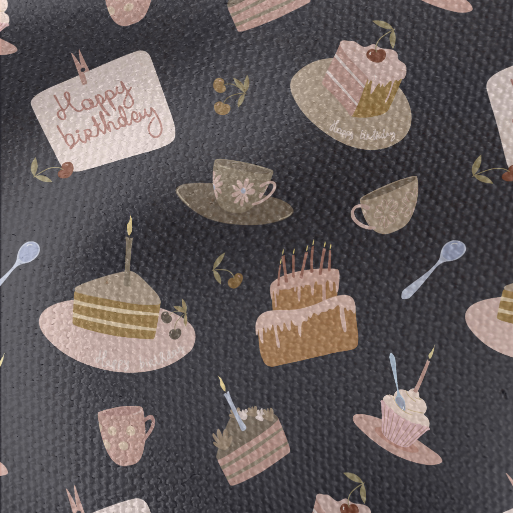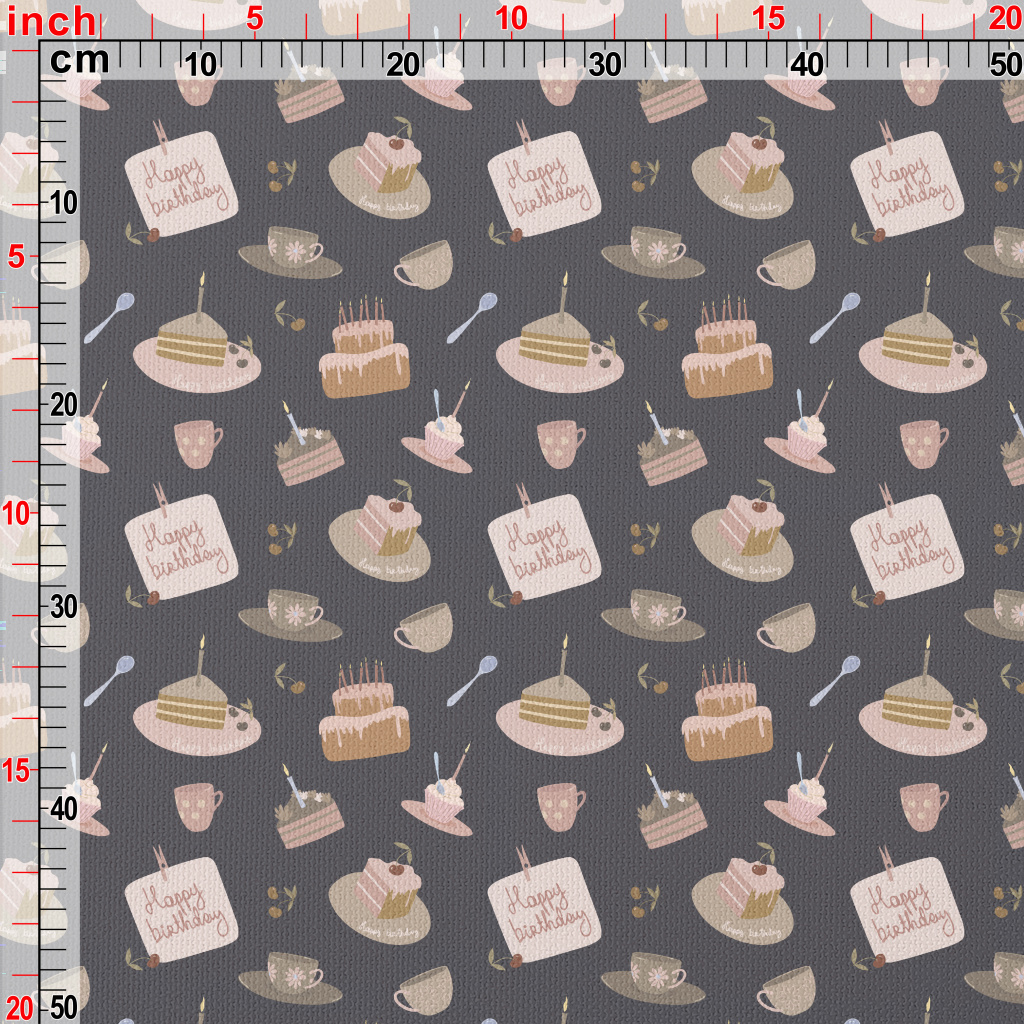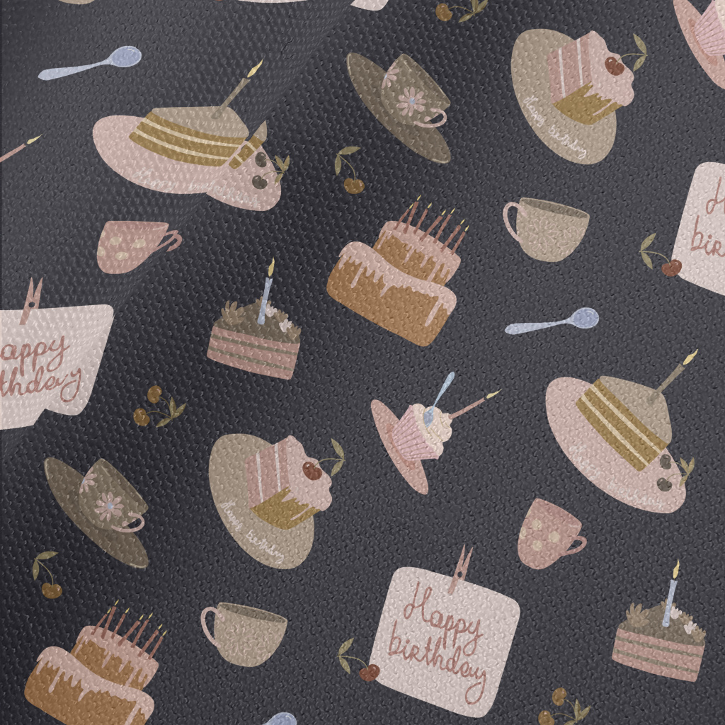 生日祝福與蛋糕杯子帆布(幅寬150公分)