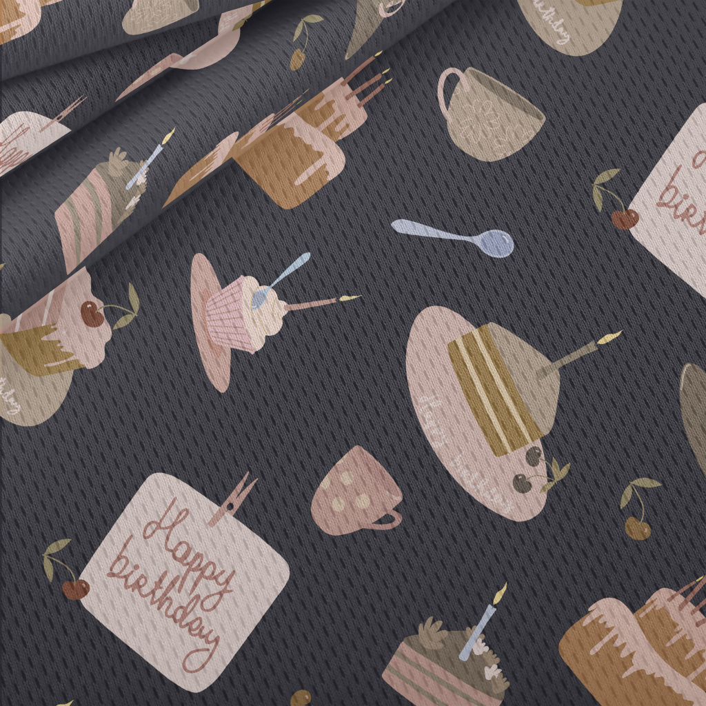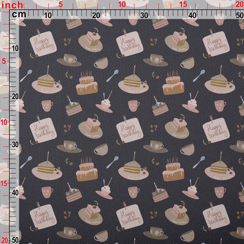 生日祝福與蛋糕杯子鳥眼布(幅寬160公分)