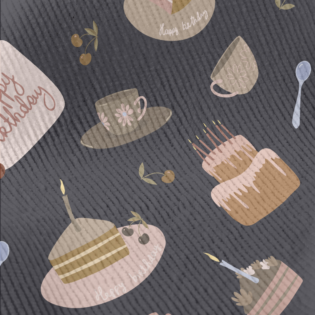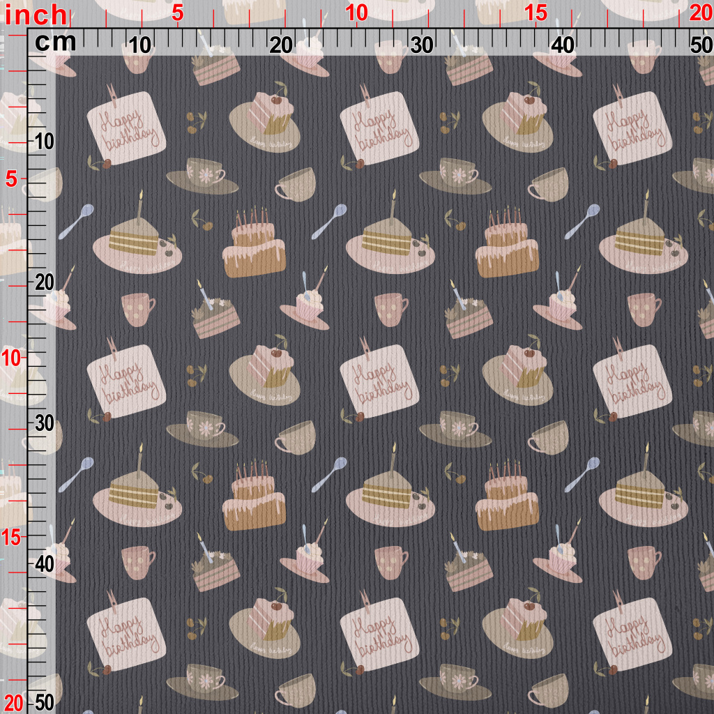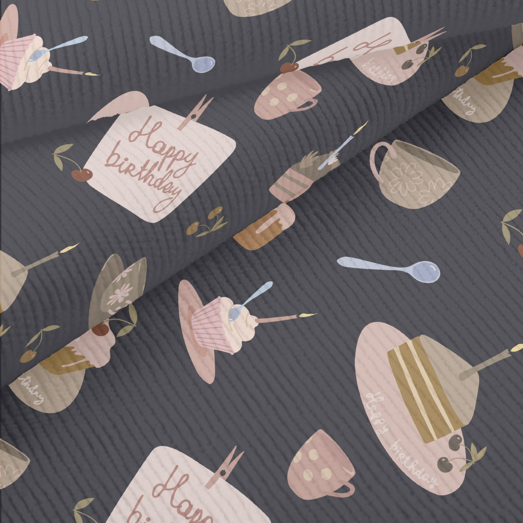 生日祝福與蛋糕杯子燈芯絨(幅寬150公分)