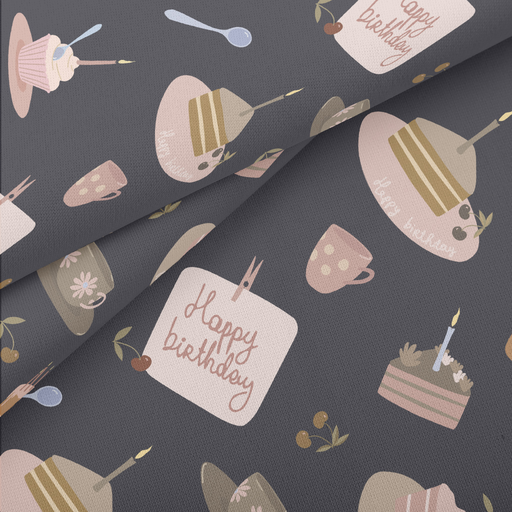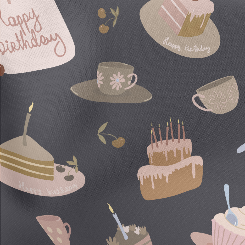 生日祝福與蛋糕杯子羅馬布(幅寬160公分)