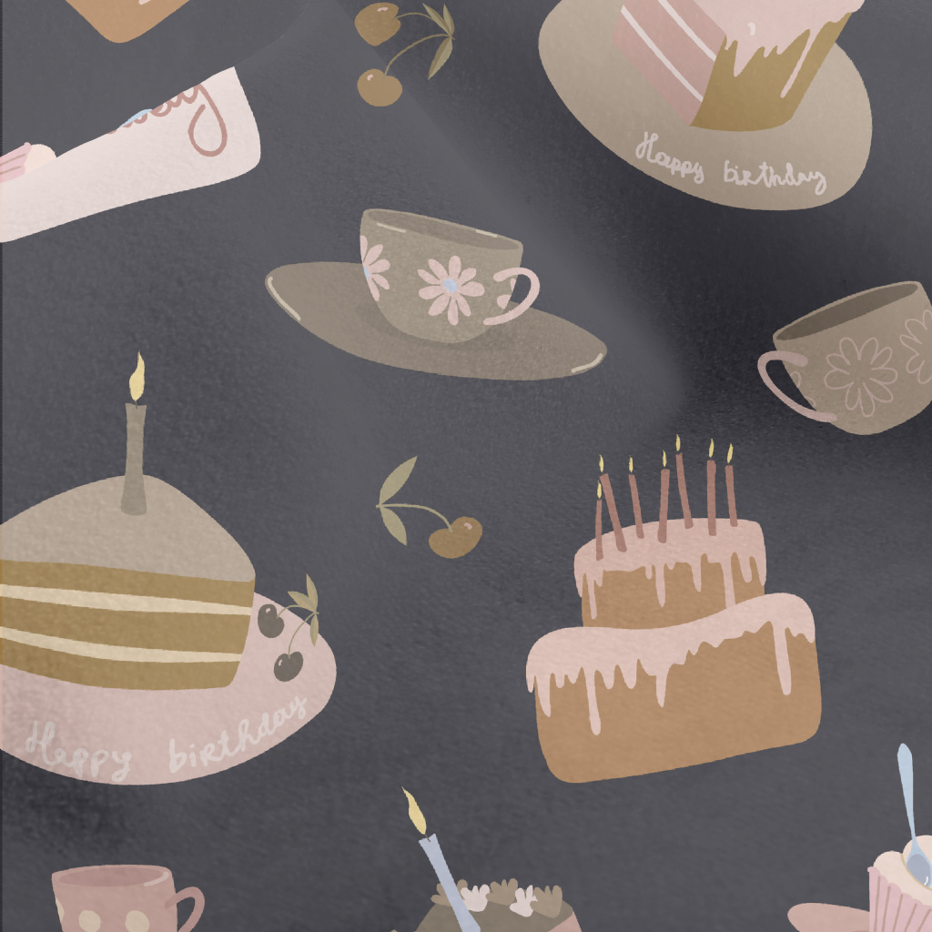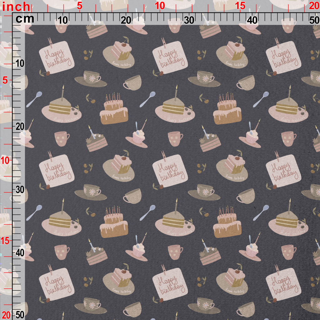 生日祝福與蛋糕杯子水晶絨(幅寬160公分)